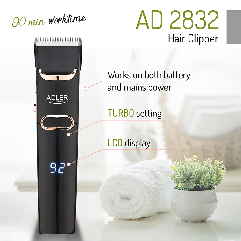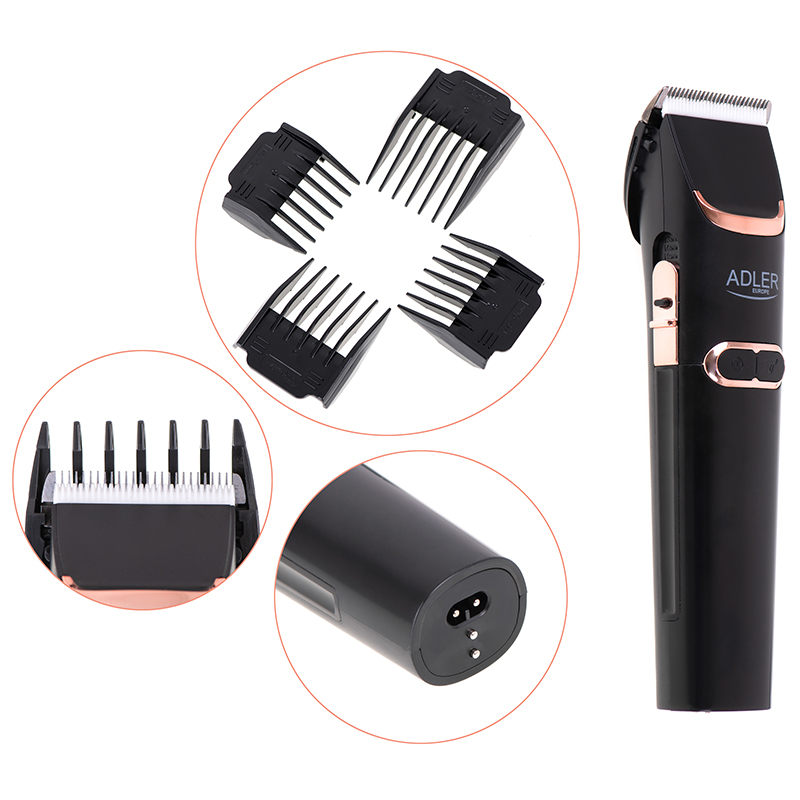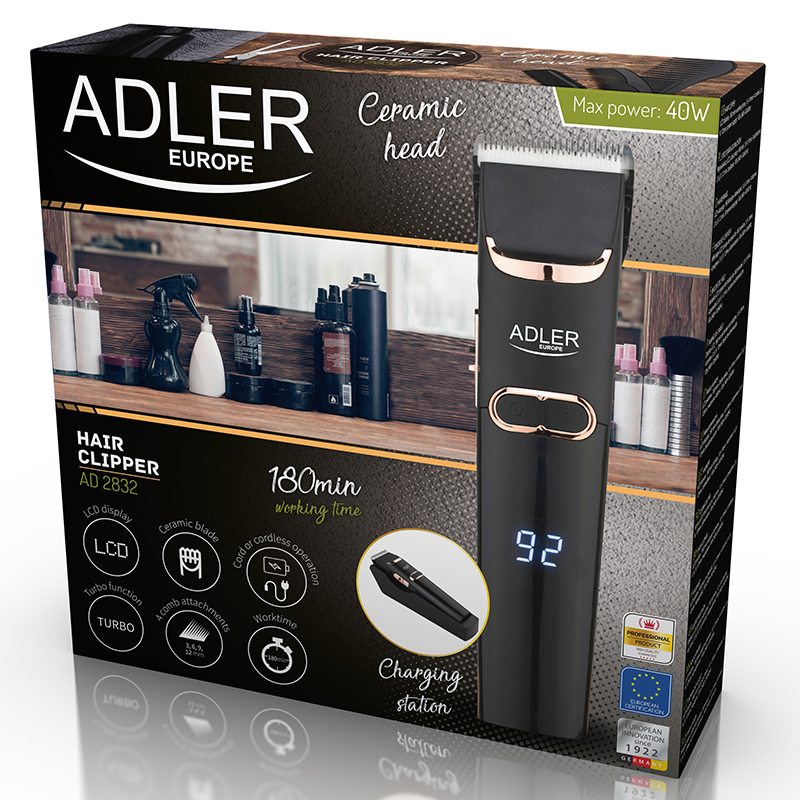 Masina de tuns Adler 2832 va ofera o taiere profesionala si precisa a parului cu ajutorul unei lame din ceramica. Bateriile eficiente permit utilizarea clipperului chiar si pentru cateva ore, dar daca doriti, acesta poate fi intotdeauna folosit cu cablu. Aparatul poate fi incarcat cu un incarcator.