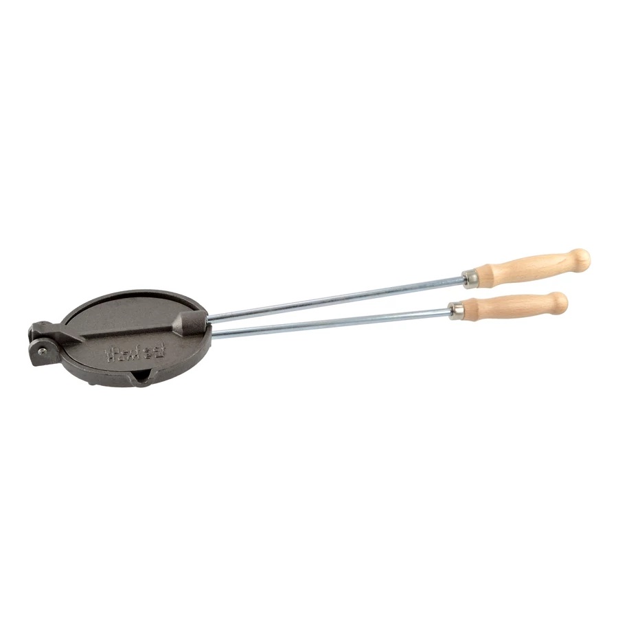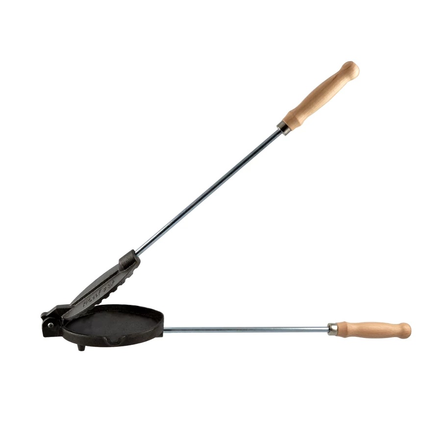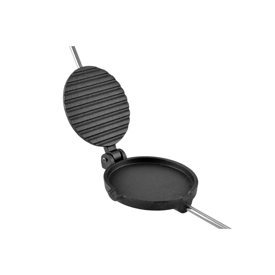 Bucură-te de gustul autentic de grătar cu acest aparat din fontă pentru prăjit slănină și carne, perfect pentru foc deschis, ceaun, grătar sau camping. Fonta păstrează și distribuie căldura uniform, iar mânerul din lemn îți oferă o prindere comodă și sigură în timpul gătirii.