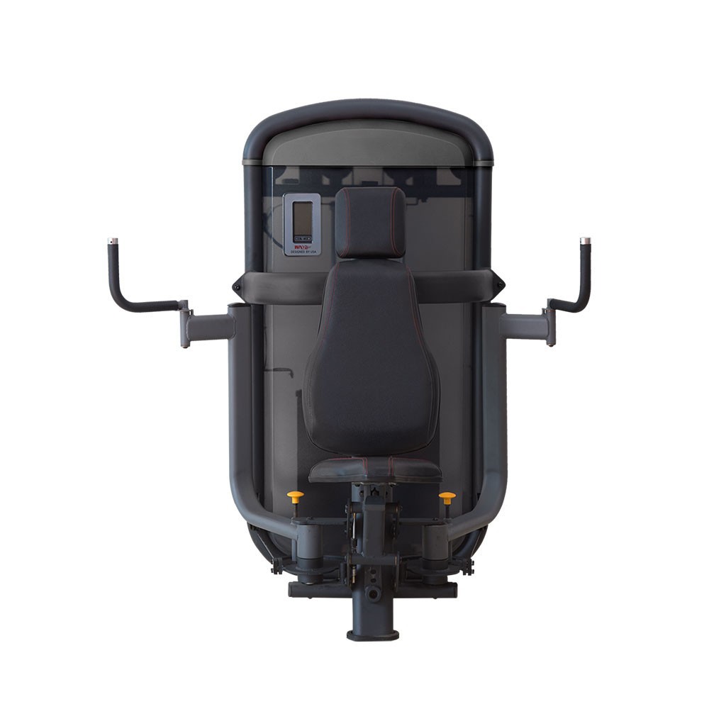 Aparat pentru extensi muschii pectorali SPORTMANN F1-7006, face parte din seria de echipamente profesionale, ce ofera utilizatorilor o experienta de antrenament premium la o valoare excelenta. Cadrul robust din metal ii confera o stabilitate mare in timpul antrenamentelor intense si ii permit o limita de greutate pentru utilizator de 200 kg. Acesta ofera un confort sporit, datorita tapiteriei din spuma de densitate mare si a captuseli din piele ecologica care ofera o rezistanta la uzura. Pe langa toate caracateristicile de mai sus aparatul mai este dotat cu un diplay LCD de 5" pe care se afiseaza timpul, nr. de repetari, greutatea selectata, calorii si ritmul cardiac (pentru acesta este necesar o centura de piept ''POLAR'' care nu este inclusa).