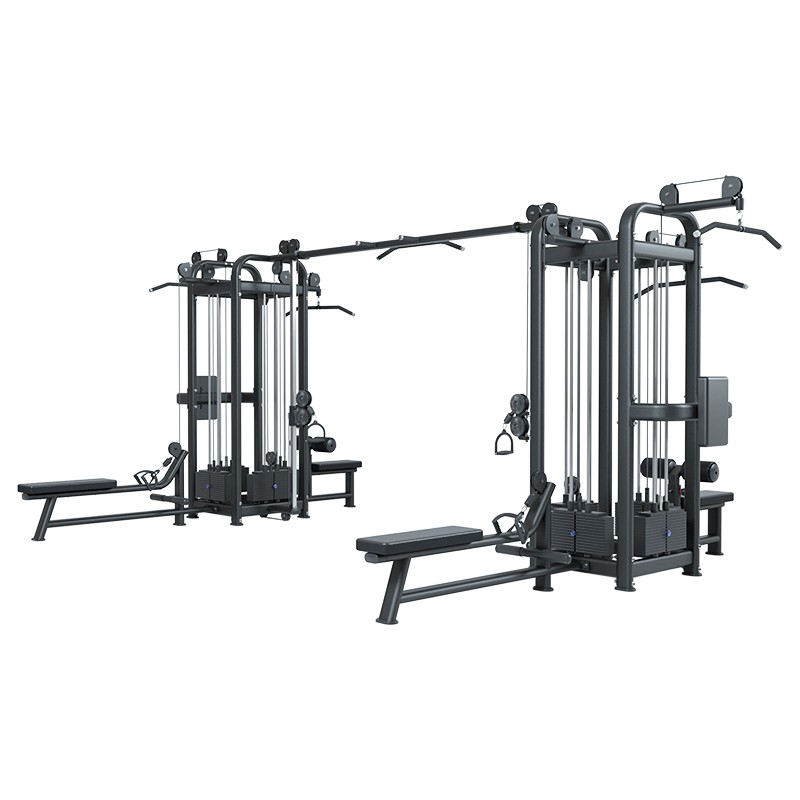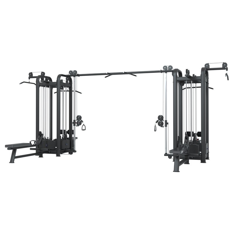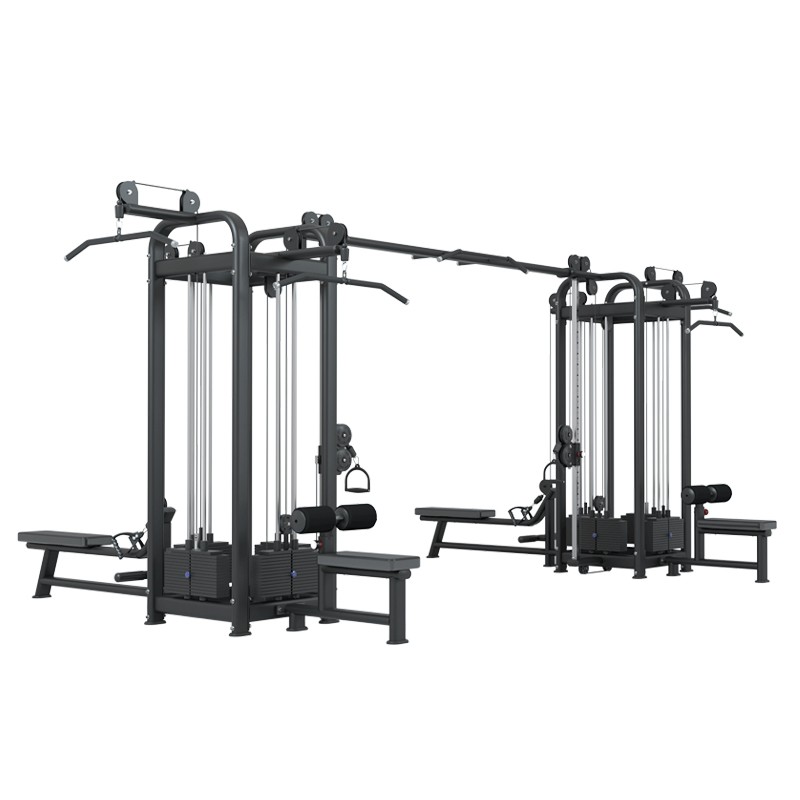 Aparat multifunctional Sportmann DGZ-7023 este un ansamblu format din 8 stive greutati, ceea ce inseamna ca se pot antrena simultan 8 persoane la acest aparat. Cadrul realizat din otel inoxidabil de calitate superioara garanteaza durabilitatea si stabilitatea aparatului. Aparatul ofera posibilitatea de a efectua: tractiuni la helcometru din picioare si asezat, ramat la cablu din asezat, fluturari la cablu, tractiuni la bara/manere fixe etc. astfel incat sa puteti antrena toate grupele musculare majore ale corpului.