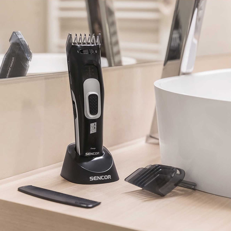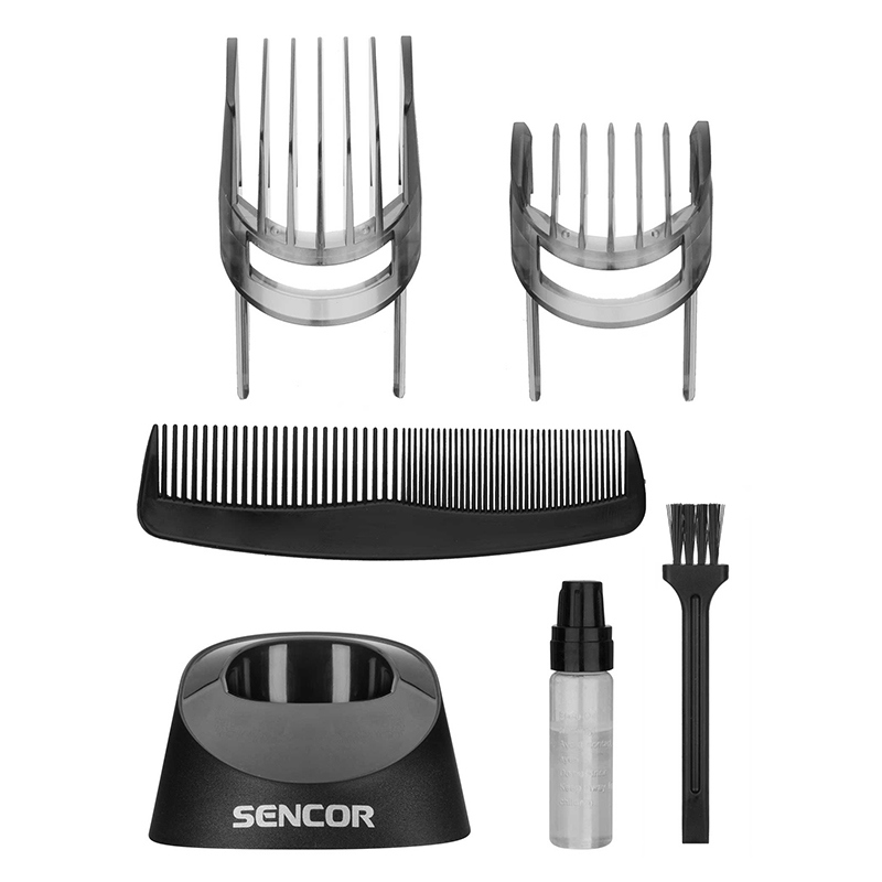 - Accesorii incluse: suport, încărcător și adaptor de alimentare, accesoriu cu 2 pieptene, perie de curățare, ulei pentru cuțite
