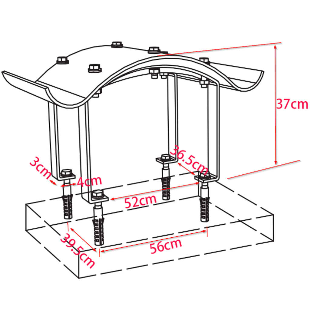 - Înălțime de la partea inferioară a acoperișului până la suport: 30 cm
