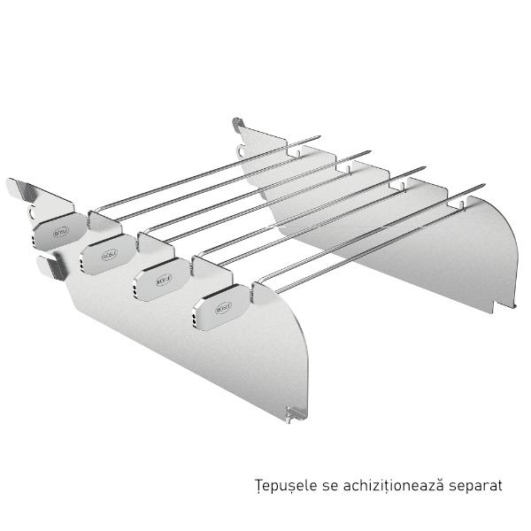 Protecție împotriva vântului și a stropilor, precum și suport pentru țepușele de frigărui, toate într-un singur dispozitiv. Pentru protecție împotriva rafalelor de vânt atunci când se face grătarul în zona principală. Cu suprafață de grătar pentru 4 țepușe de frigărui de grătar, pentru prepararea la grătar a unor frigărui crocante de carne și legume în zona principală. Asamblare simplă în doar câțiva pași. Potrivit pentru grătarele pe gaz VIDERO G2-S, G3-S, G4-S, G6-S, bucătăria exterioară VIDERO G4-SL și bucătăria exterioară VIDERO G4-SK. Se recomandă accesorizat cu: Țepușe pentru frigărui, nr. articol 25069 Caracteristici:- Dimensiune produs: 36 x 10 x 2 cm (L x l x)