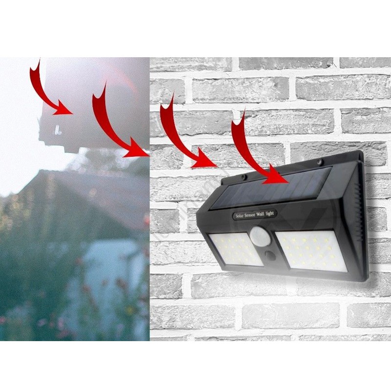 Aplica este prevazuta cu senzor crepuscular si de miscare, astfel incat pe timpul noptii lumina se va aprinde automat atunci cand este detectata prezenta umana. Atunci cand oamenii se apropie la o distanta de aproximativ aproximativ 3 metri se va porni automat o lumina slaba, care poate ramana aprinsa timp de 15-25 de secunde, pana cand oamenii ies din zona de detectare, apoi se opreste. Datorita senzorului incorporat puteti economisi energie, lumina pornind doar atunci cand detecteaza miscare daca este setat modul corespunzator. Aceasta aplica este o alternativa economica de iluminare utilizand energie exclusiv de la soare.