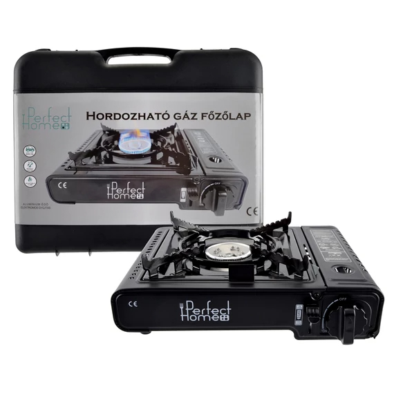 Aragaz portabil pe butan, negru, cu aprindere piezo – 2,5 kW, Perfect Home