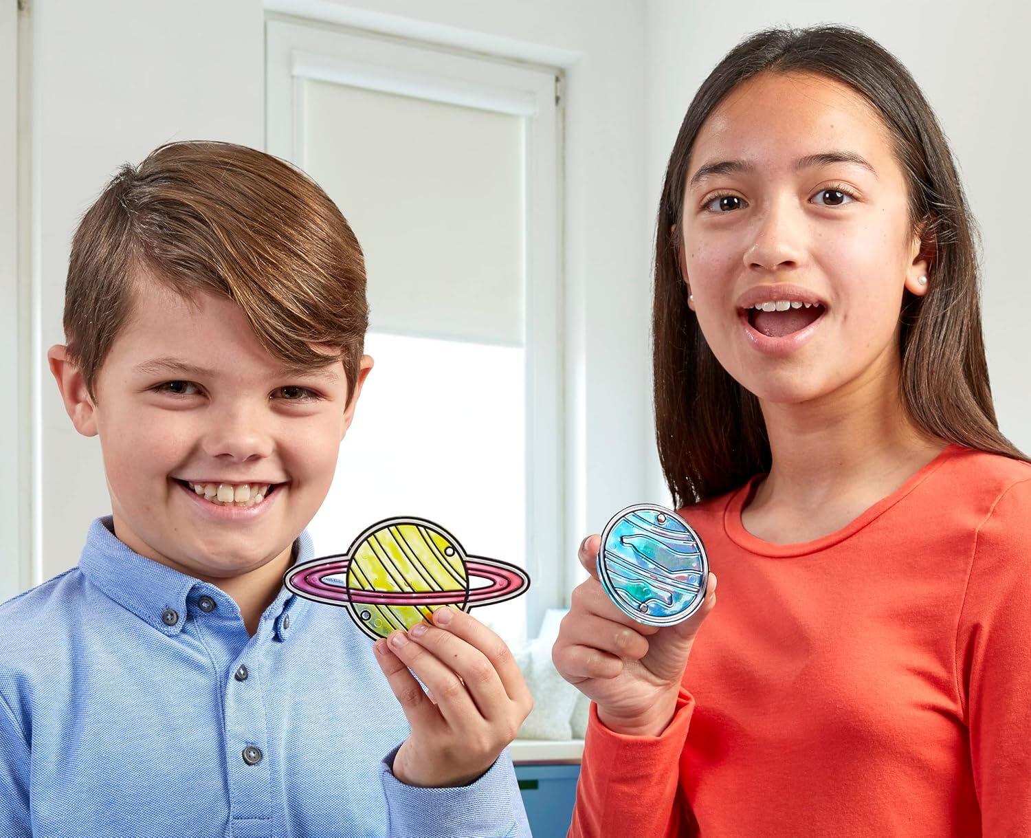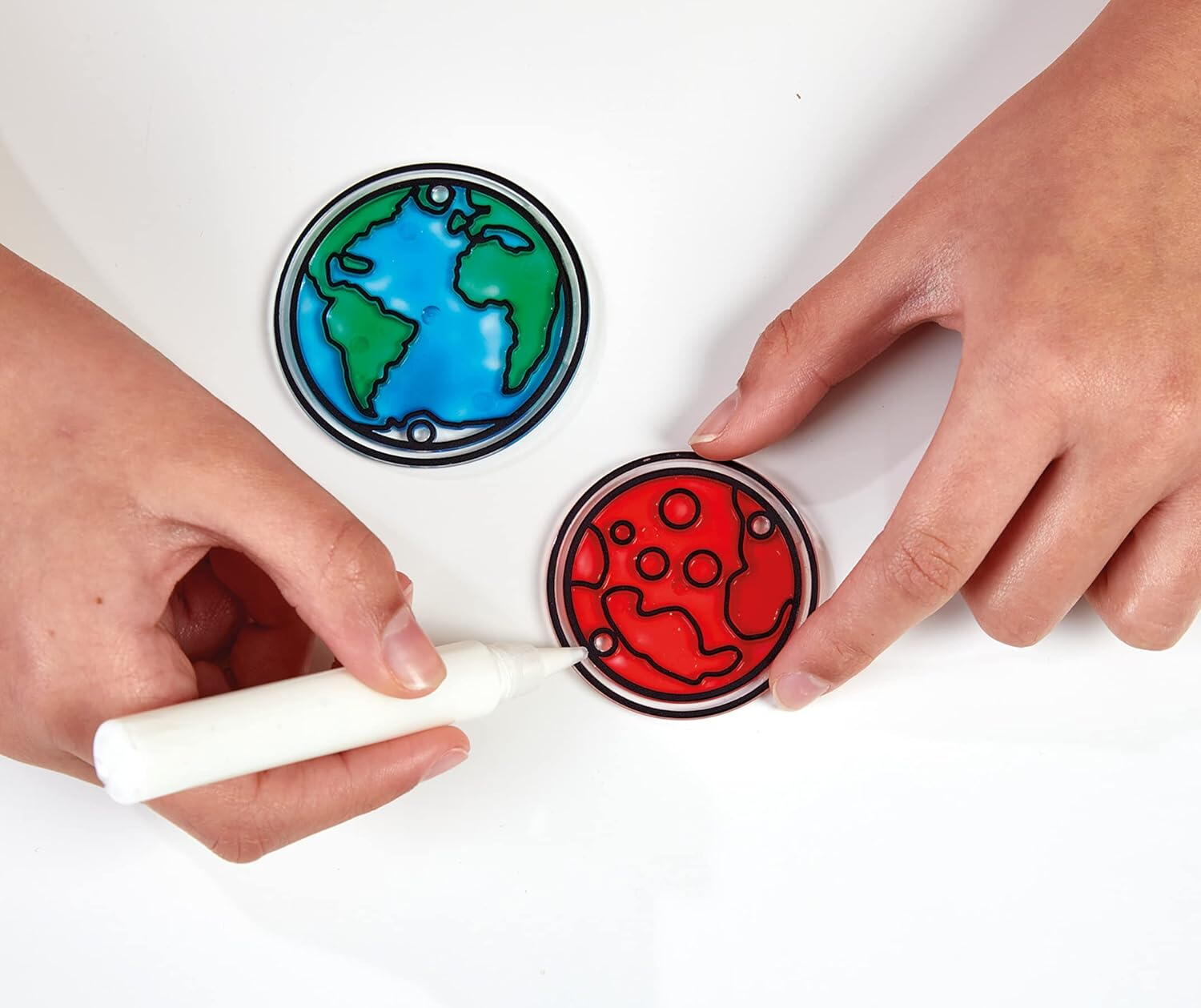 Transforma joaca intr-o aventura printre planete cu acest set arta pe geam dedicat copiilor pasionati de spatiu. Cei mici pot crea propriul sistem solar, pictand cele 8 planete cu vopsele translucide care capteaza lumina si ofera un efect vizual spectaculos la fereastra. Setul este ideal pentru activitati creative, decorative si educative, stimuland imaginatia si curiozitatea pentru astronomie.