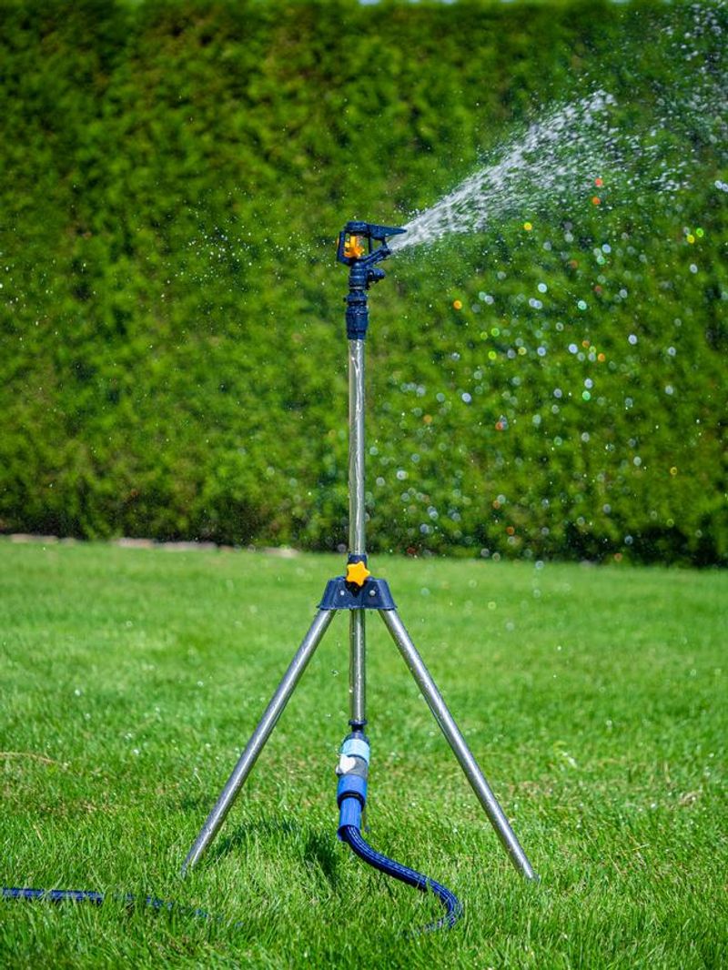 Utilizare: conecteaza aspersorul la furtunul de gradina, pozitioneaza trepiedul pe o suprafata stabila si regleaza presiunea in intervalul recomandat pentru o stropire optima. Recomandat pentru gazon, gradini, curti si zone verzi.