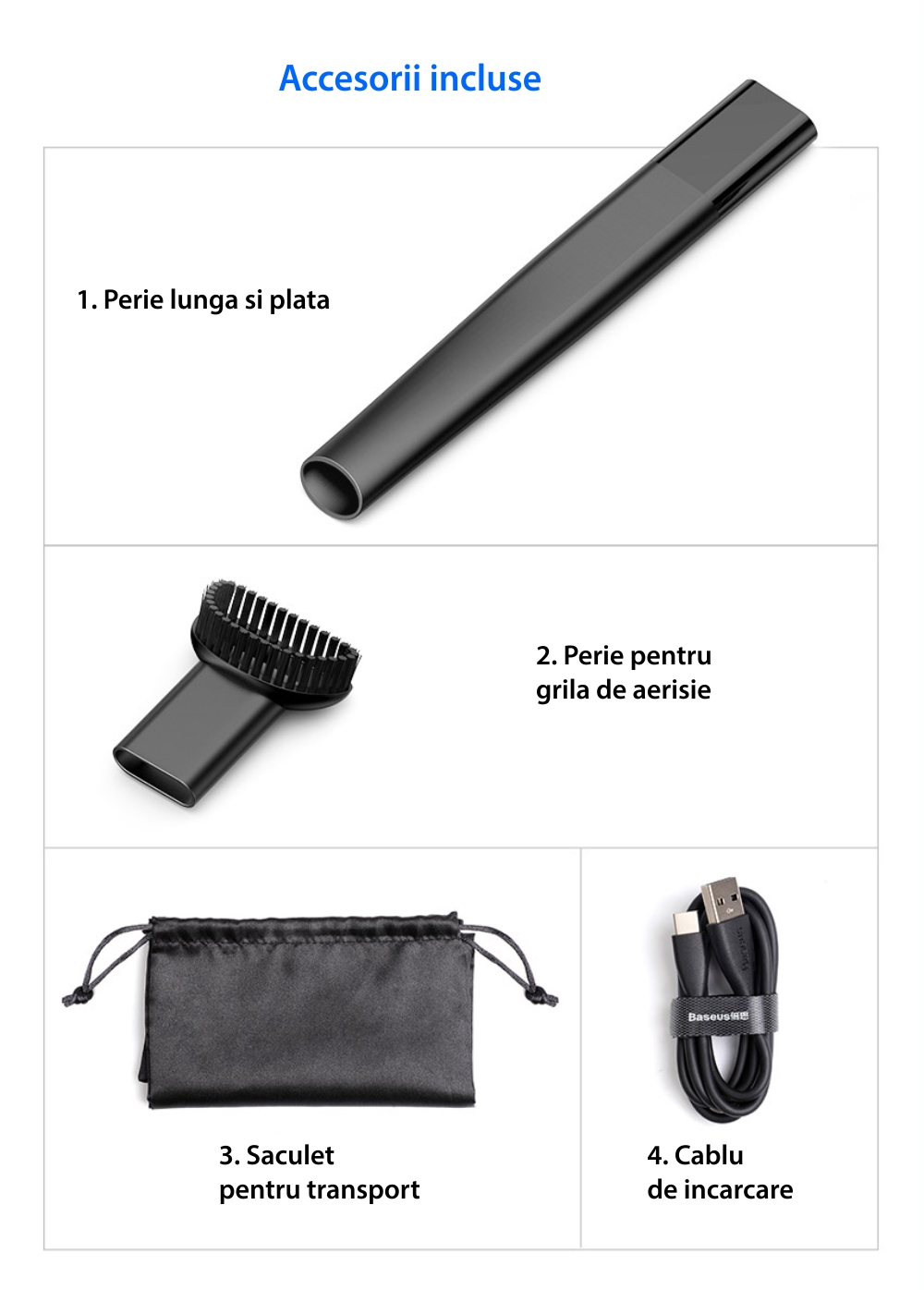 Specificatii Aspirator auto Baseus Capsule, Wireless, Baterie