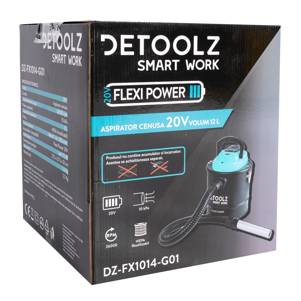 Aspirator de cenușă 20V Detoolz, 12L, pentru șeminee și grătare