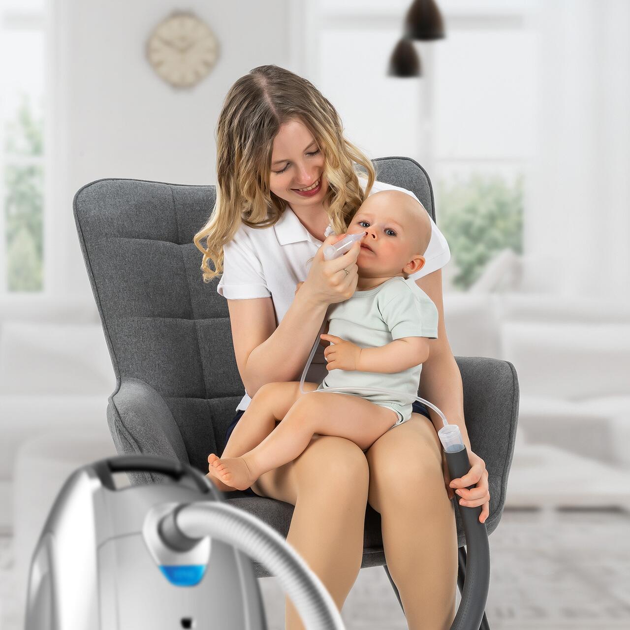 Este ideal in perioadele de raceala, alergii sau congestie nazala, cand bebelusul are dificultati la somn, hranire sau respiratie. Designul sau permite o folosire rapida, iar piesele se demonteaza usor pentru spalare si sterilizare. In plus, saculetul de depozitare face transportul simplu si igienic, inclusiv in calatorii.