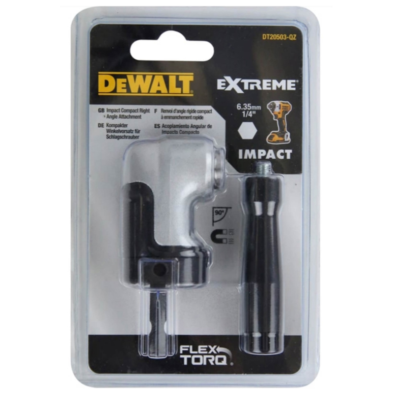 - Magnet puternic pentru retinerea surubului si utilizare cu o singura mana[oai_citation:4‡dewalt.co.uk](https://www.dewalt.co.uk/product/dt20503-qz/impact-ultra-compact-impact-right-angle-attachment?utm_source=chatgpt.com)