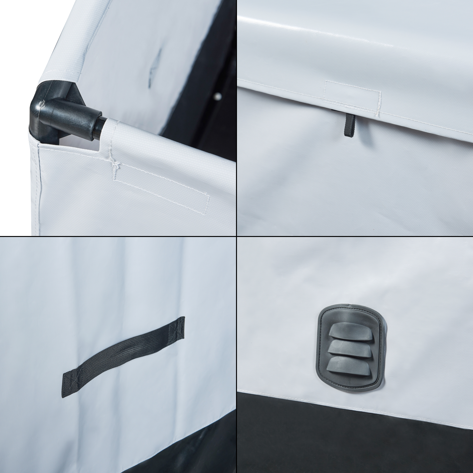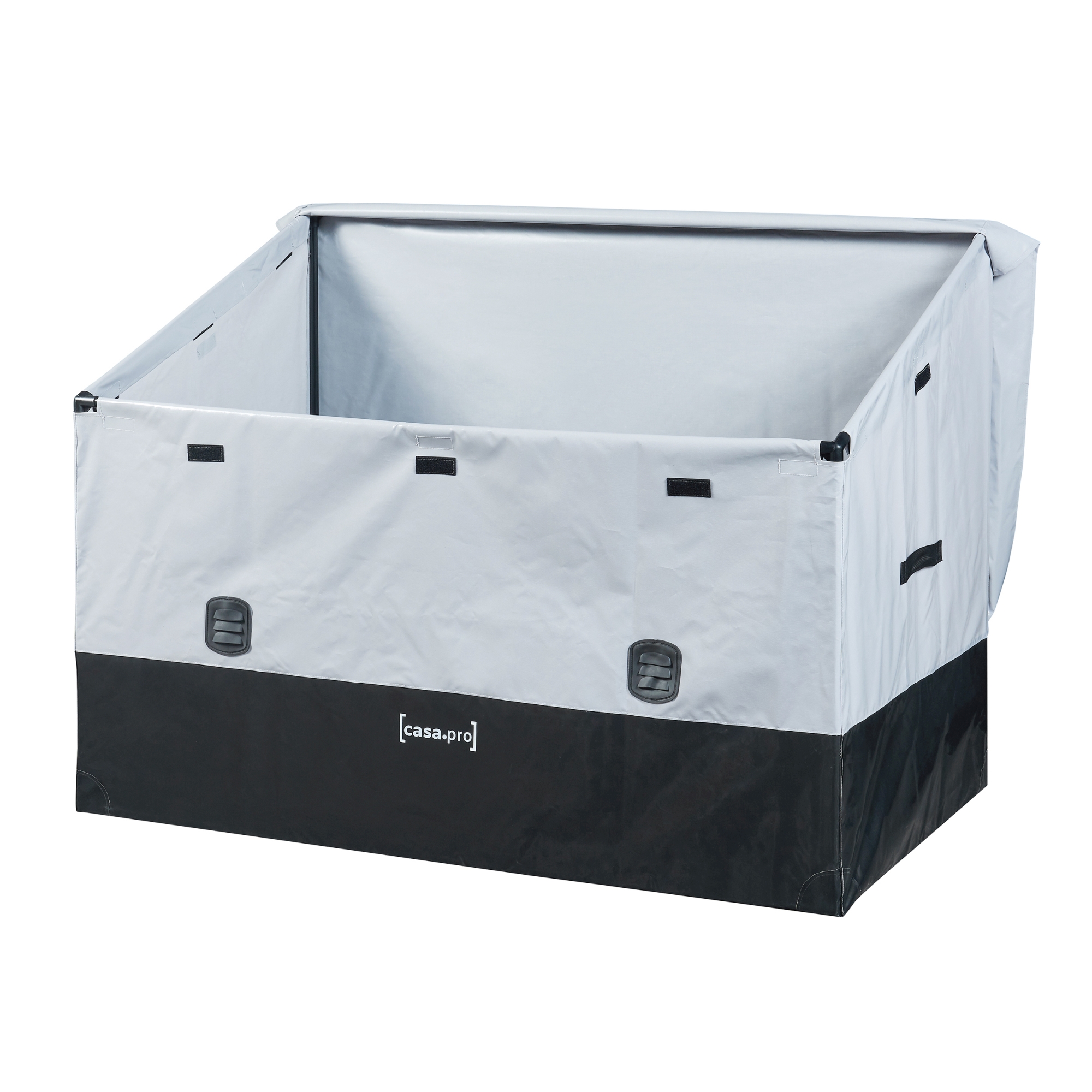 Die Box ist nicht nur geräumig, sondern auch äußerst robust und wetterfest. Eine wasserdichte Plane schützt Ihre Gegenstände zuverlässig vor Regen, Sonneneinstrahlung und Wind.