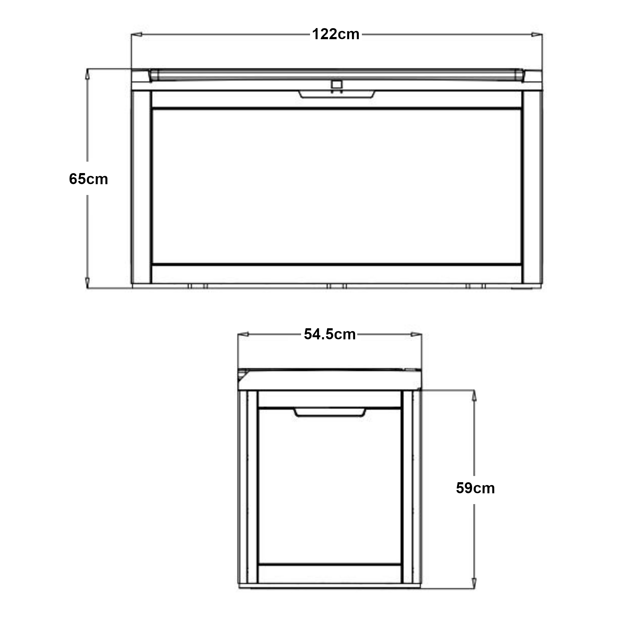 - Höhe ohne Deckel: 59 cm