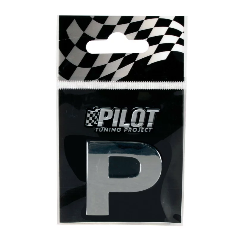 Descriere Autocolant 3D crom auto litera P,