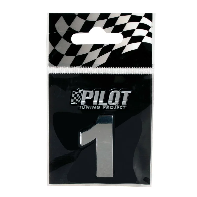 Autocolant 3D crom cifra 1, 28 mm, cu adeziv pentru auto și moto