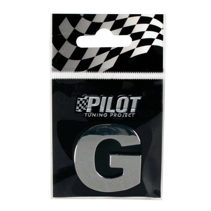 Autocolant 3D crom litera G 28 mm cu adeziv pentru personalizare auto