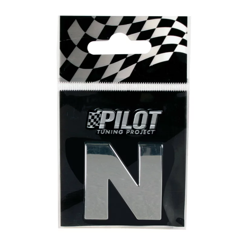 Autocolant 3D crom litera N auto, 28 mm, cu adeziv puternic