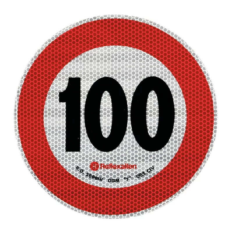 Descriere Autocolant limitator viteza reflectorizant 100 km/h,