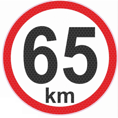 Descriere Autocolant reflectorizant limita viteza 65 km,