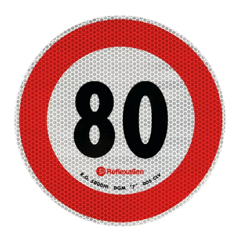 Descriere Autocolant reflectorizant limitator viteza 80 km/h,