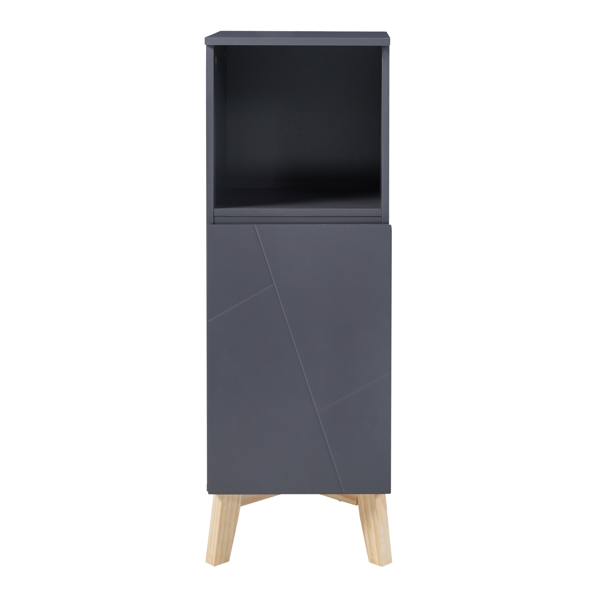 Der Schrank verfügt über eine Tür und lässt sich dadurch mühelos öffnen und schließen, sodass Sie einen einfachen Zugriff auf Ihre Badutensilien haben. Das offene, obere Ablagefach bietet eine weitere Möglichkeit zum Verstauen von sämtlichen Gegenständen wie bspw. Handtücher, Toilettenpapier oder Reinigungsartikel.