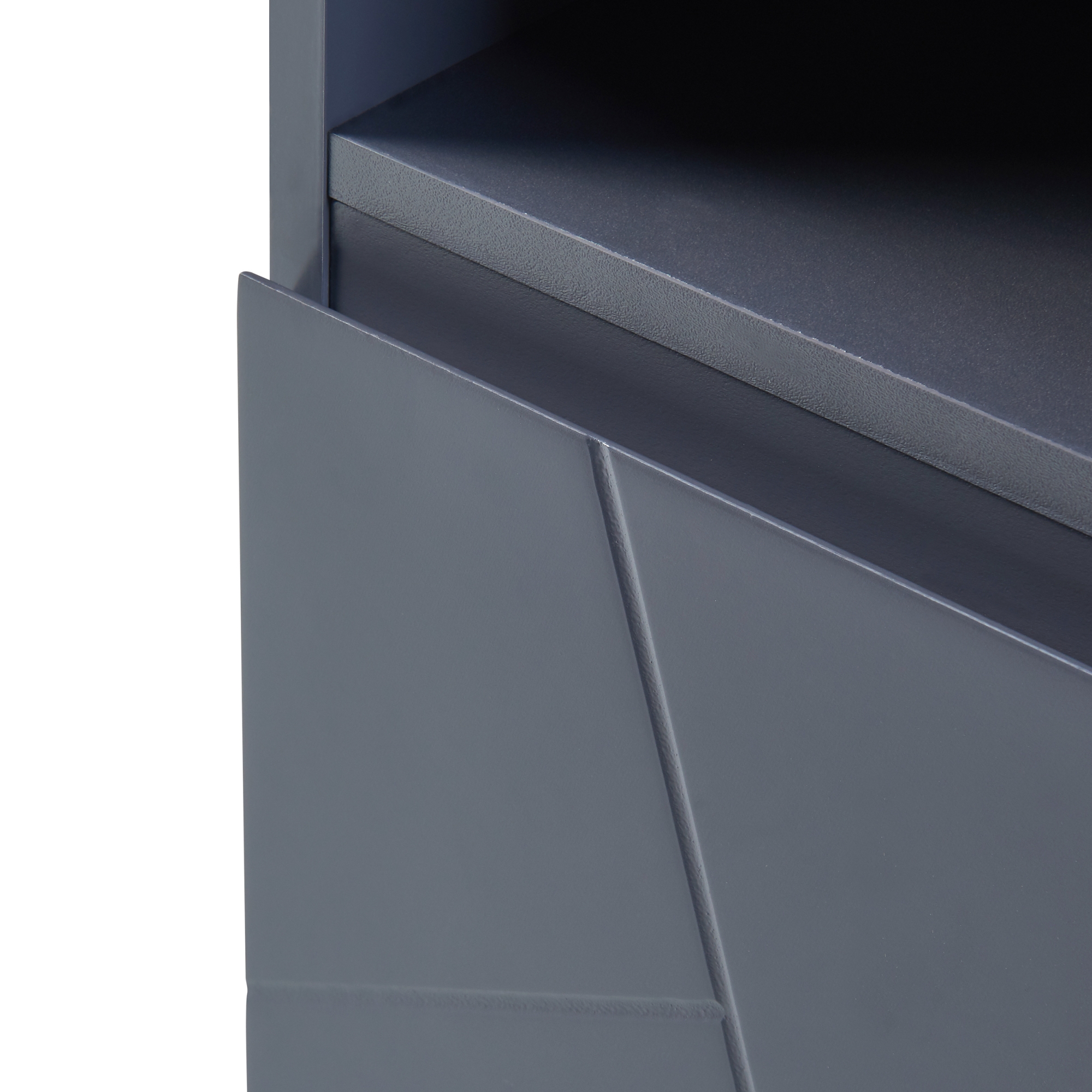 - Mit einer Schranktür und einem offenen Ablagefach