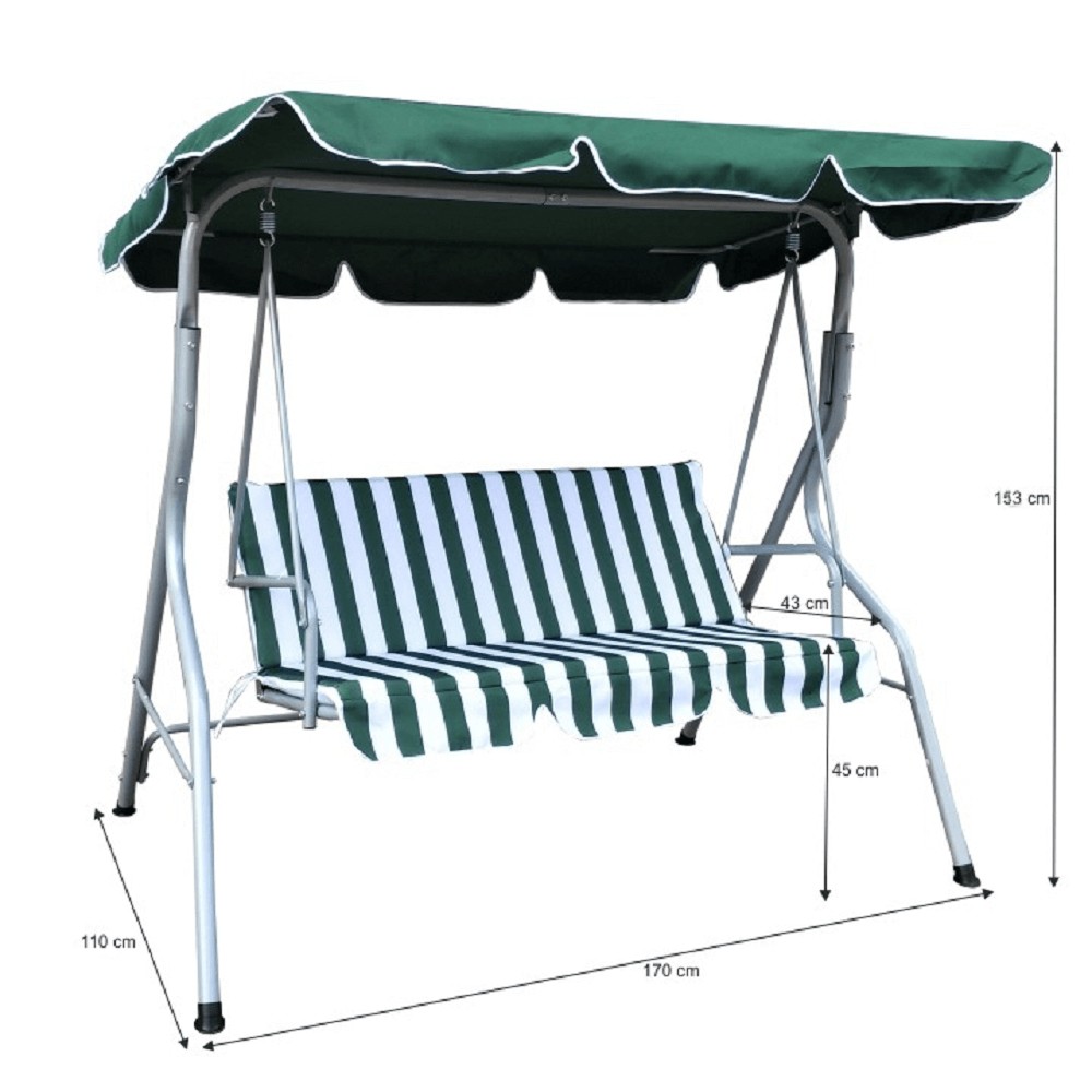 Dimensiunile totale ale balansoarului sunt de 170 x 110 x 153 cm.
