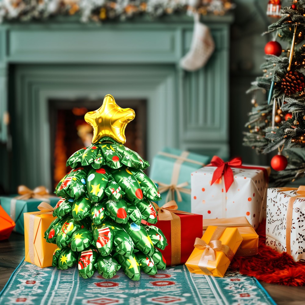 Baloanele nu pot fi lăsate în afara oricărei decorațiuni de Crăciun! Acest balon mare de pom de Crăciun din folie de aluminiu este un cadou excelent pentru copii, dar poate fi folosit și pentru a decora diferite incaperi. Bradul de Crăciun compus din mai multe baloane oferă o experiență vizuală minunată în 360 de grade. Pentru o umflare usoara, pachetul vine cu un tub gonflabil!