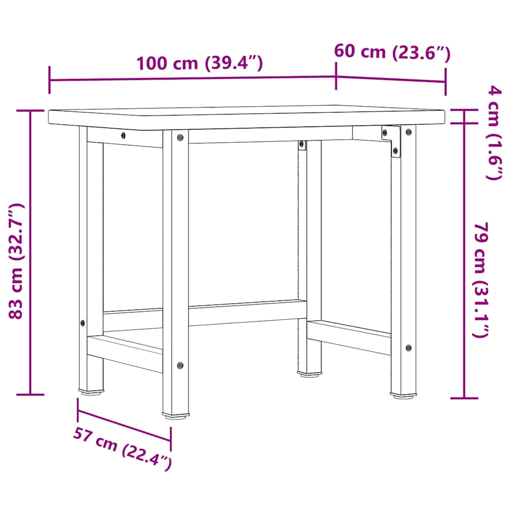 Banc de lucru 100x60x83 cm lemn masiv fag, dreptunghiular GartenMobel Dekor