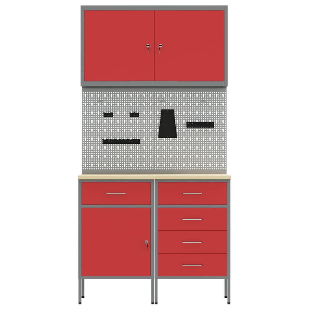 Banc de lucru cu sertar 5 pcs Roșu 100 x 55 x 200 cm Oțel GartenMobel Dekor