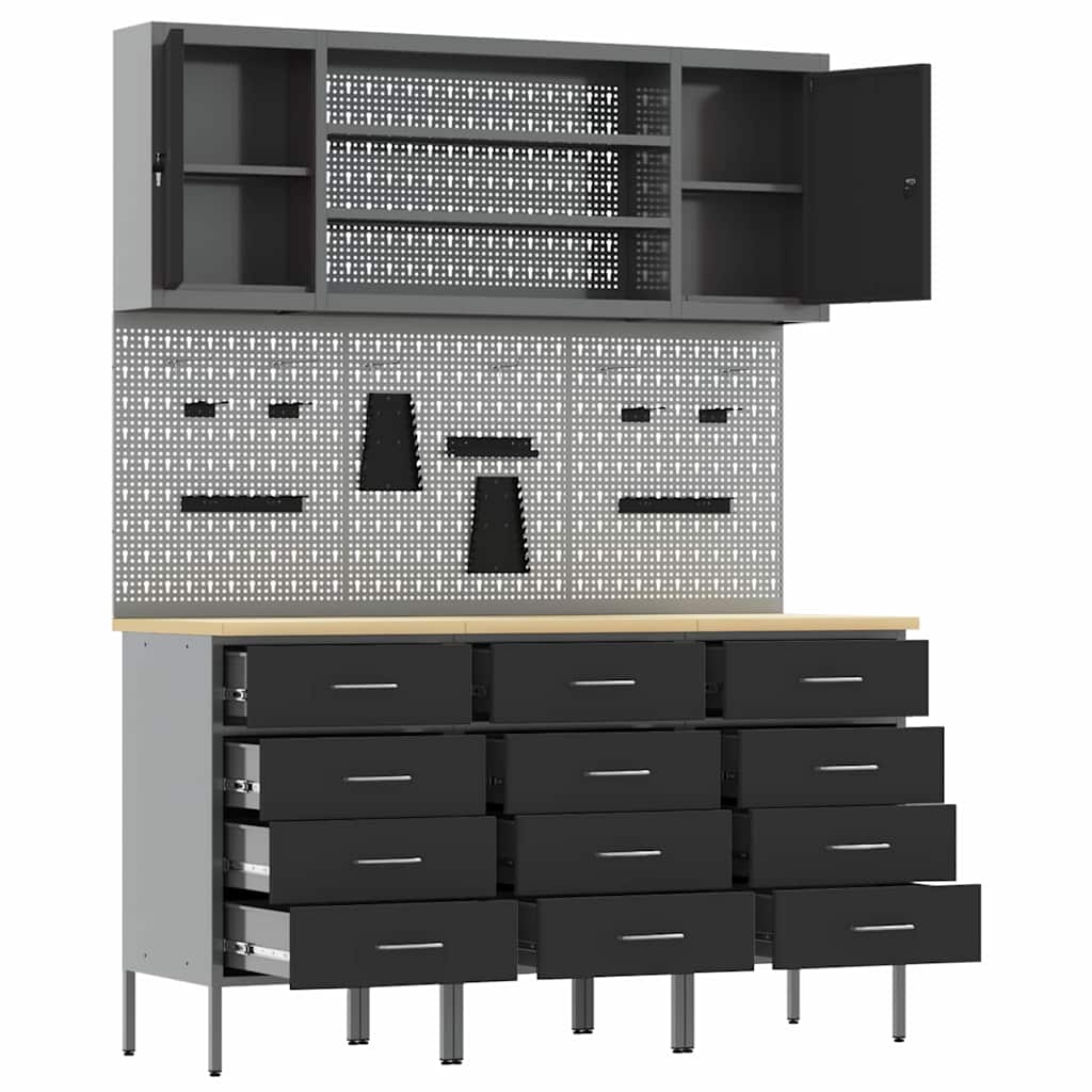 Banc de lucru cu sertar 7 pcs Negru 150 x 55 x 200 cm Oțel GartenMobel Dekor