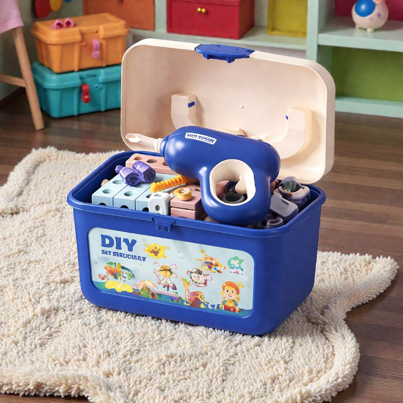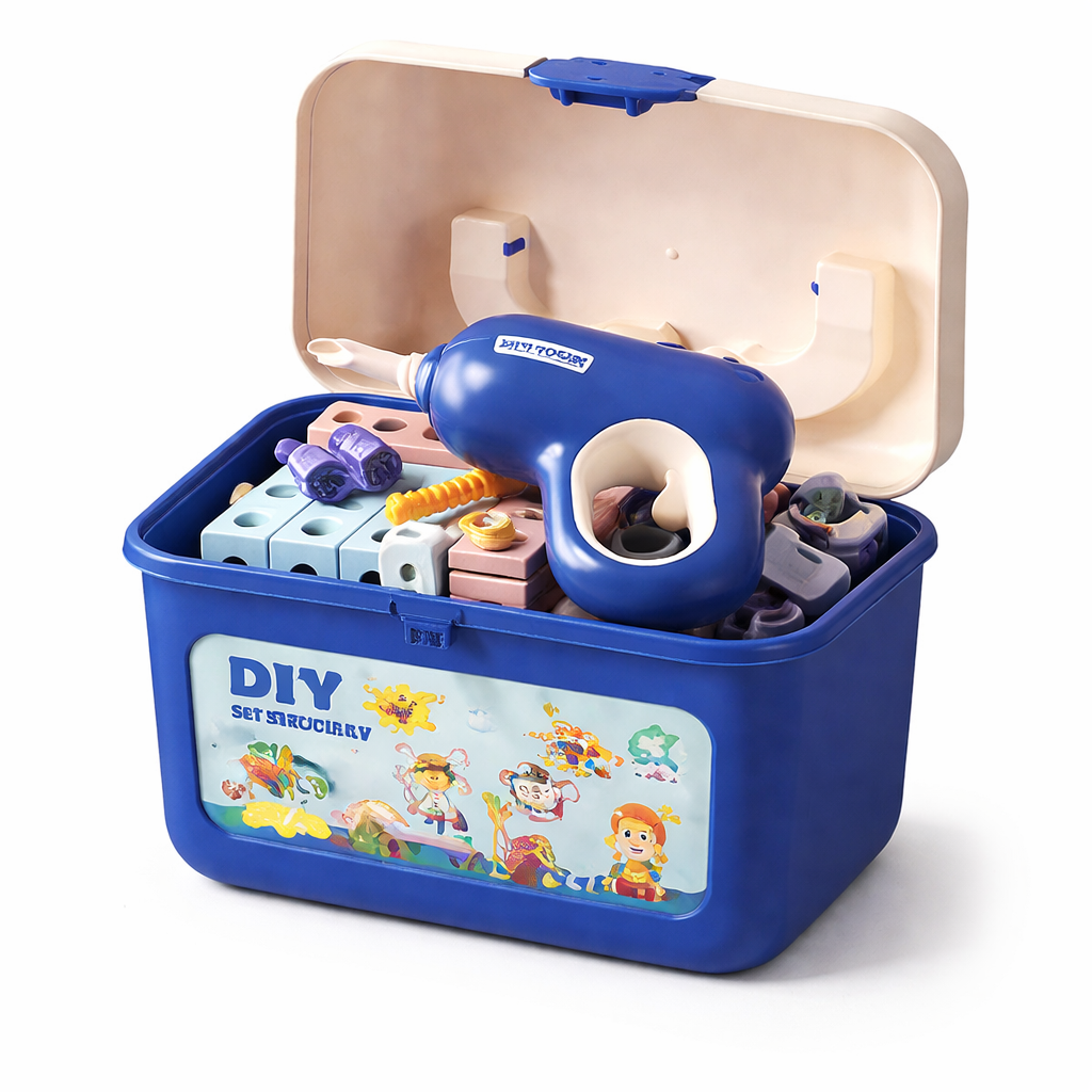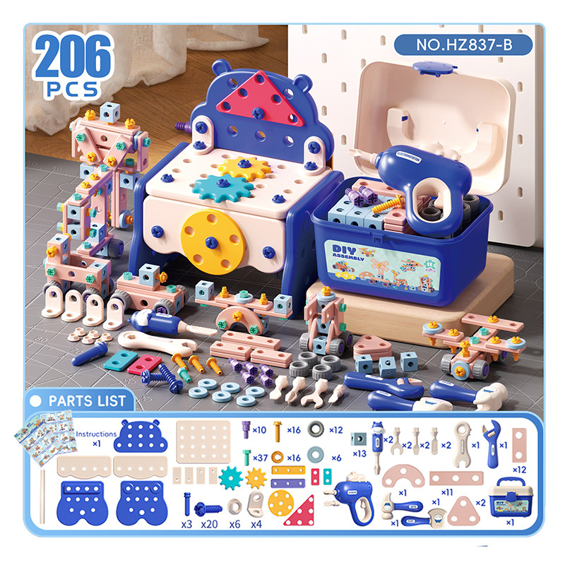 Cum se folosește: Alege o combinație de plăci și elemente, fixează-le cu șuruburi și piulițe, apoi folosește bormașina electrică pentru a strânge sau slăbi piesele. Copilul poate crea modele precum vehicule, roboți sau structuri, apoi le poate reconstrui oricând în alte forme.