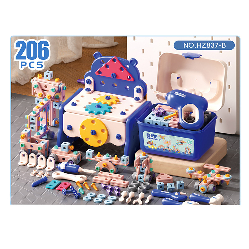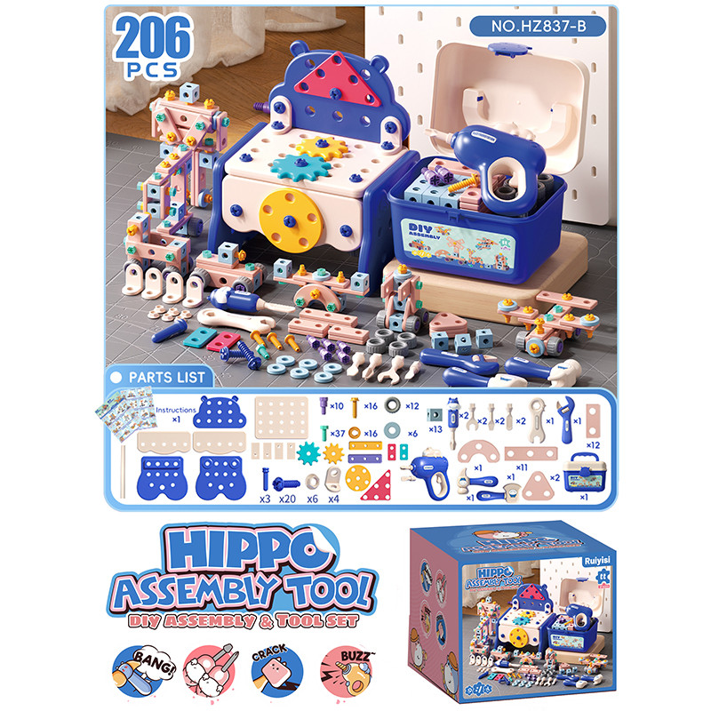 Oferă-i micuțului tău propriul banc de lucru pentru copii, gata de proiecte creative! Setul include 206 piese și o bormașină electrică pentru copii (funcționează cu baterii), pentru joacă realistă, sigură și plină de imaginație. Se transformă ușor într-un atelier practic, perfect pentru micii constructori de la 3 ani.