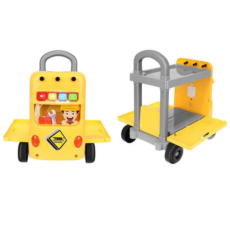 Atelierul este echipat cu 4 roti care faciliteaza deplasarea lui pe suprafete plane, dar si de un maner care ajuta la impingerea acestuia. In comparatie cu alte ateliere, acesta dispune de efecte sonore: in partea din fata a caruciorului se afla un panou de joc pe care se regasesc 4 butoane colorate, datorita carora puteti auzi diverse melodii si sunete, precum melodia "la multi ani".