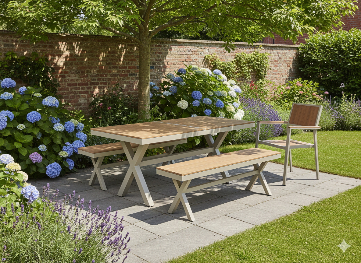 Datorită cadrului din aluminiu și finisajului rezistent la intemperii, această bancă exterior oferă durabilitate foarte bună în timp. Este o alegere inspirată atât pentru locuințe, cât și pentru spații comerciale, unde contează aspectul ordonat, rezistența și întreținerea facilă.