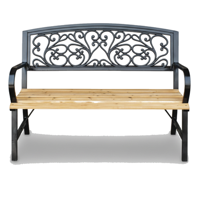 Descriere Banca gradina lemn otel, spatar decorativ,