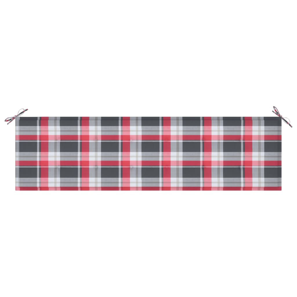Bancă de grădină, pernă roșie carouri, 175 cm, lemn masiv tec GartenMobel Dekor