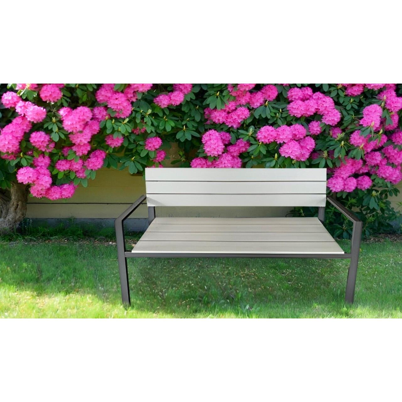 Banca de gradina, spatar plastic, structura otel, gri, 118x54x77 cm, Miruna GartenVIP DiyLine