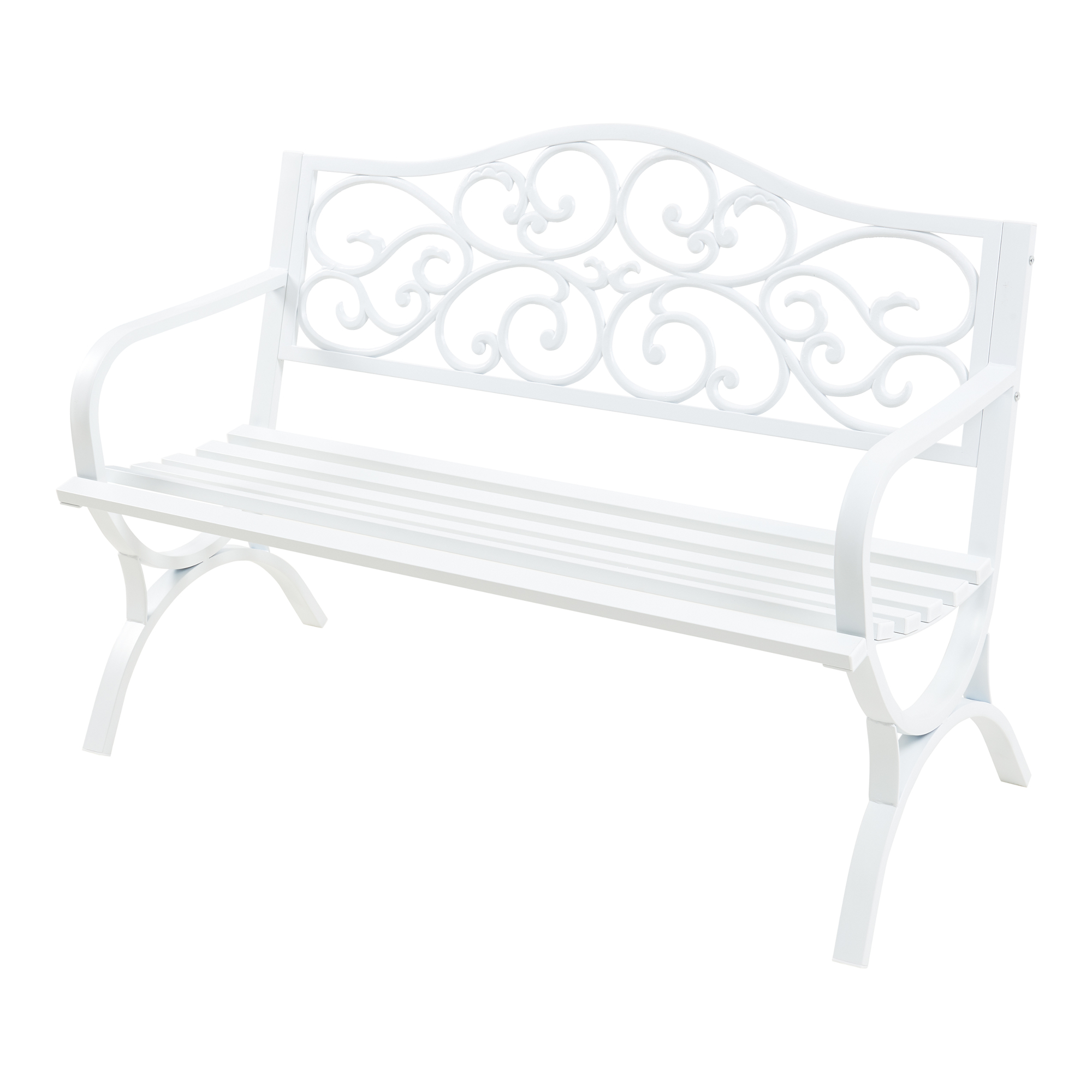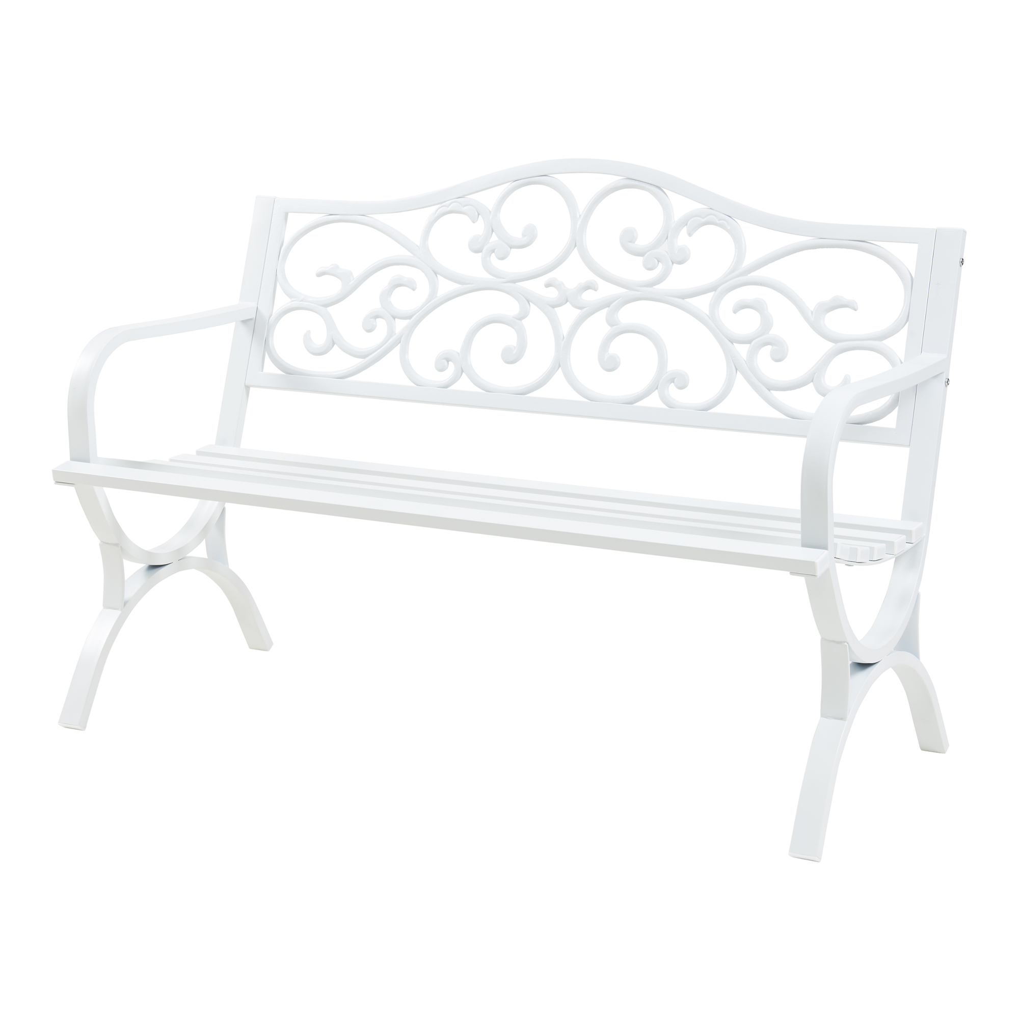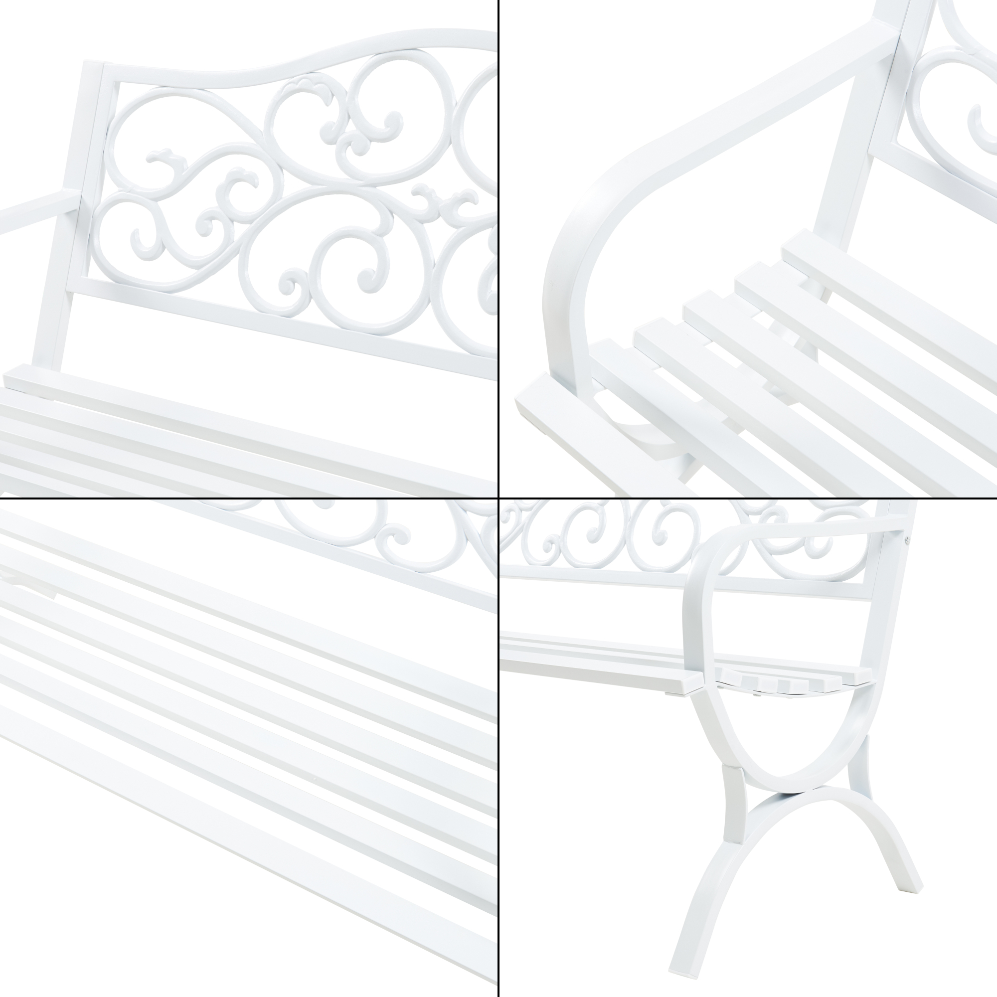 Concepută pentru 2-3 persoane, banca este prevăzută cu spătar decorativ și cotiere practice, pentru un plus de confort și susținere. Finisajul alb îi oferă un aspect luminos și prietenos, ușor de asortat cu mobilierul de exterior modern sau romantic.