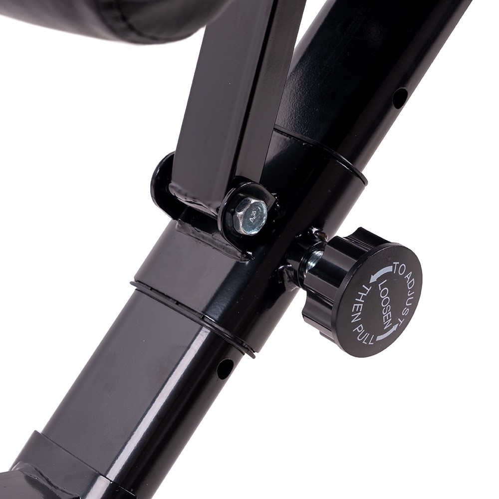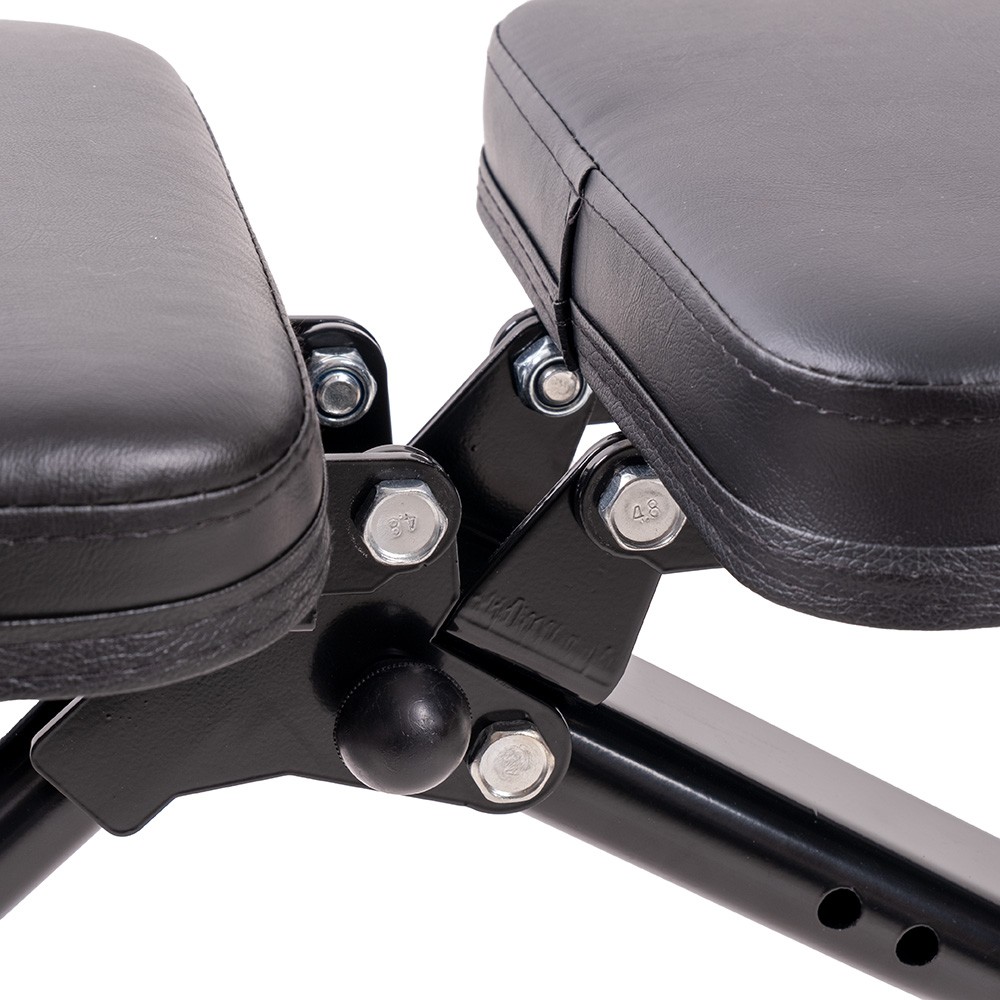 Datorita spatarului reglabil, care poate fi ajustat in noua pozitii diferite, si a scaunului reglabil, banca este extrem de versatila si ofera o gama larga de utilizari. Captuseala de inalta calitate, de 5 cm, suportul pentru picioare cu role confortabile si cadrul stabil cu picioare anti-alunecare ofera confort maxim in timpul antrenamentului.