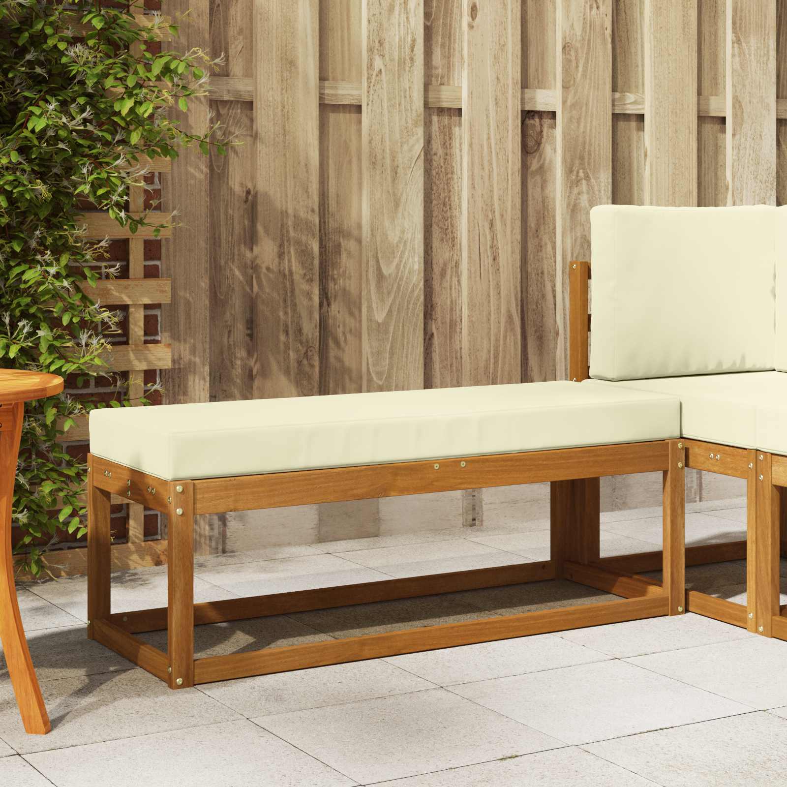 Bancă Exterioară cu pernă Natural și Crem 115 x 43 x 45 cm GartenMobel Dekor