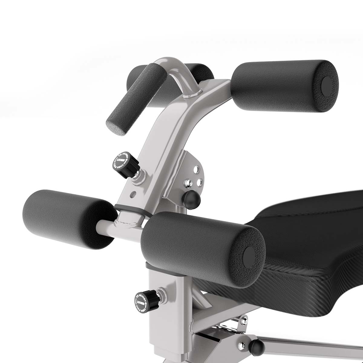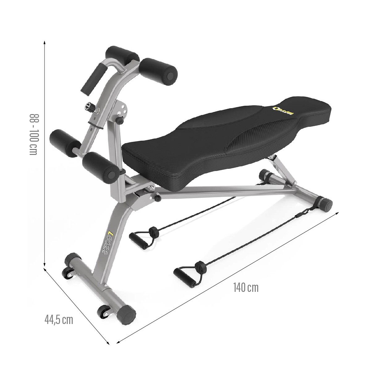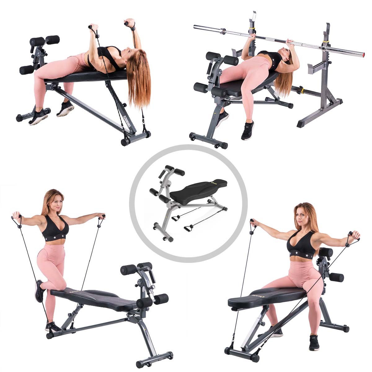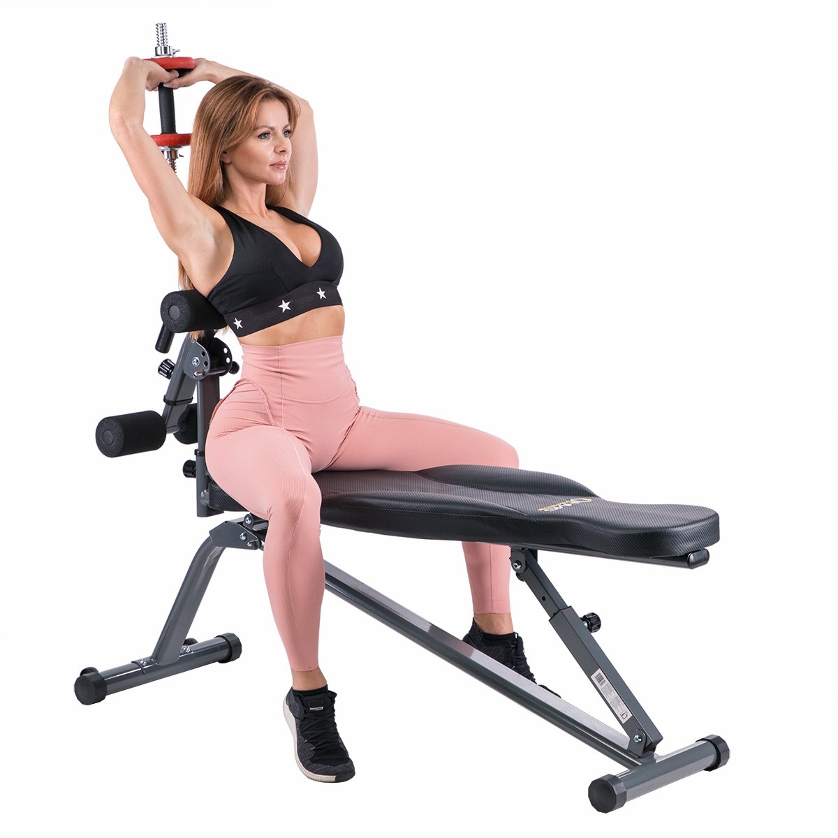 Banca de Forta HMS PREMIUM L8022 va ofera o multime de oportunitati de exercitii. Aceasta va functiona bine in antrenamentele cu gantere sau haltera. Banca are un spatar ergonomic special conturat, care influenteaza direct confortul in timpul exercitiilor si mai presus de toate, ofera o pozitie corecta utilizatorului. O placa solida asigura stabilitatea spatarului, iar un burete moale garanteaza confortul exercitiilor. Tapiteria moderna care imita carbonul este rezistenta la umezeala si transpiratie si previne alunecarea corpului in timpul exercitiilor. Banca va ofera posibilitatea de a efectua o multitudine de exercitii. Designul sau o face sa fie ideala pentru suportul pentru haltere, precum si pentru antrenamentul cu gantere. Plasarea spatarului in cea mai joasa pozitie va permite sa faceti exercitii de abdomene Suportul pentru picioare va garanta confort si siguranta in timpul efectuarii acestui exercitiu. Banca de Forta HMS PREMIUM L8022 are incluse doua benzi de rezistenta, care va vor diversifica antrenamentul.