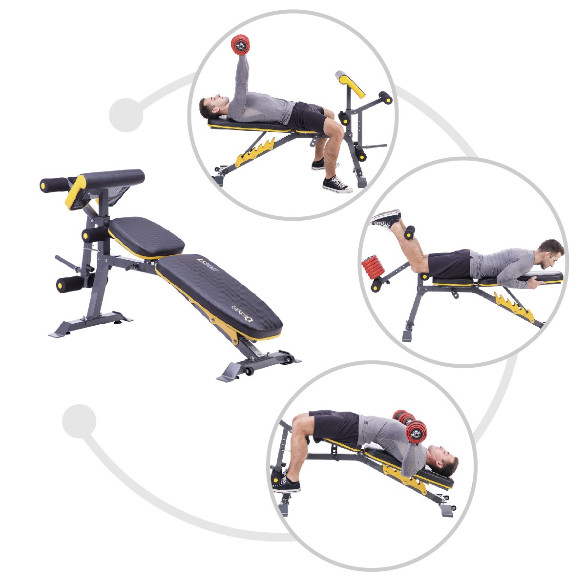 Banca dispune de 6 nivele de reglare a unghiului spatarului, 3 nivele pentru scaun si 4 nivele de reglare a inaltimi pentru banca scott. Aceste posibilitati de reglare va vor permite sa reglati banca la inaltimea sau nevoile de exercitiu a utilizatorului.