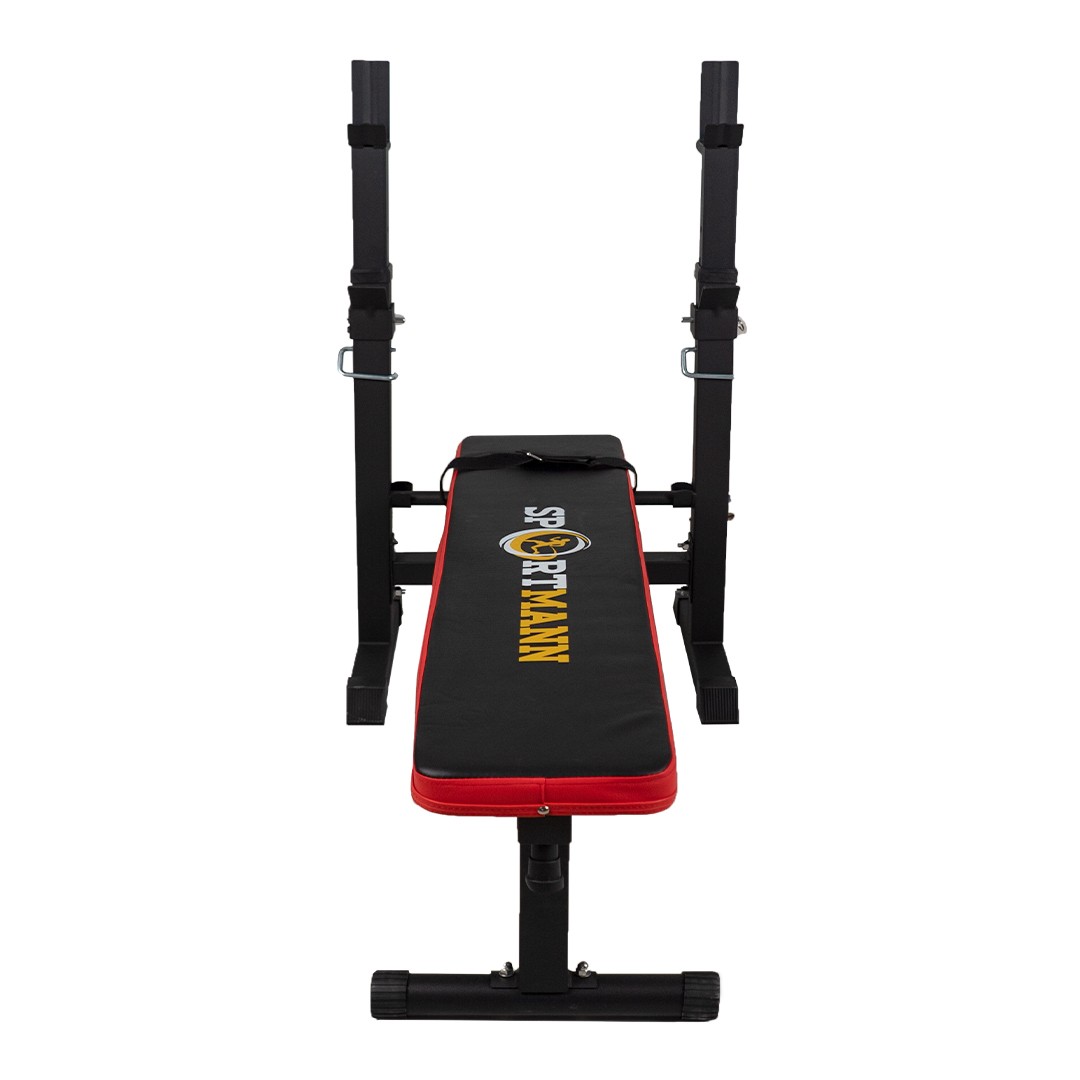 Banca Forta Sportmann Santiago va permite sa faceti prese la banca in confortul casei dvs.! Cadrul robust ofera o limita de greutate de pana la 200 kg (inclusiv greutati). Totusi, banca nu este uriasa, asa ca nu va ocupa mult spatiu. Inaltimea suportului pentru bara poate fi reglata la 5 nivele diferite( intre 78-94 cm), permitand un antrenament confortabil. Captuseala groasa de 4.5 cm face ca banca sa fie potrivita chiar si pentru utilizatorii mai grei. Exista, de asemenea, manere parelele pe suportii de bara, datorita carora puteti diferite exercitii. Cand ati terminat, pliati banca si depozitati-o.