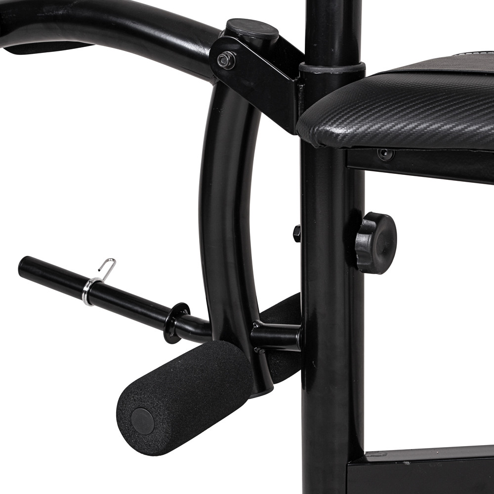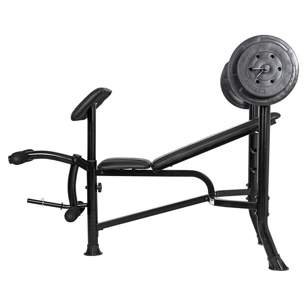 Cand te-ai saturat de exercitii de presa pe banca, poti sa faci exerciti cu atasamentul pentru picioare (care foloseste si discuri de greutate pentru a regla rezistenta) sau exercitii de biceps cu ajutorul atasamentului pentru bicepsi. Atat sigurantele cat si bara au un diametru de 25 mm.