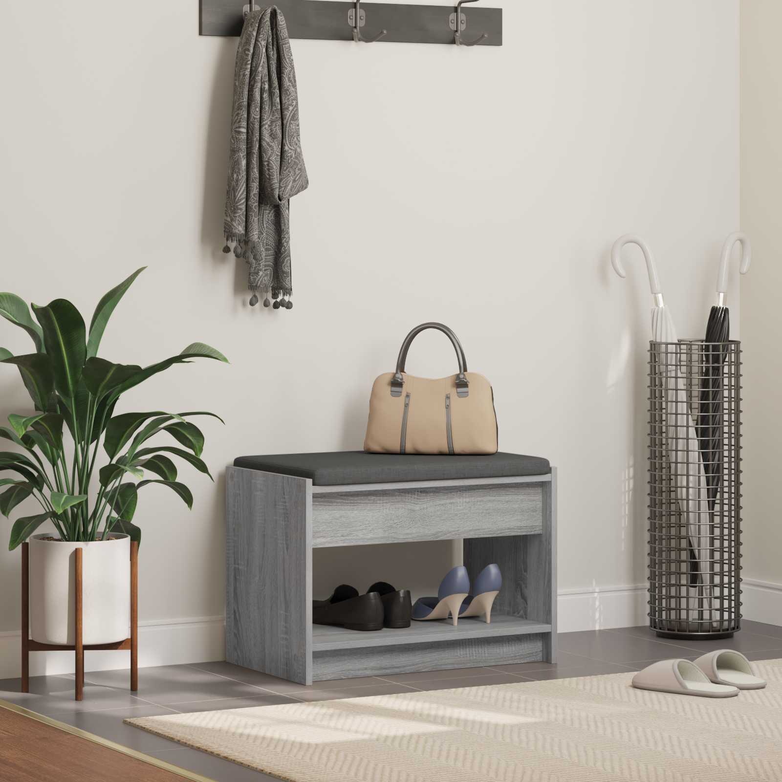 Bancă pentru hol cu pernă cu raft Sonoma gri 63 x 38 x 45 cm GartenMobel Dekor