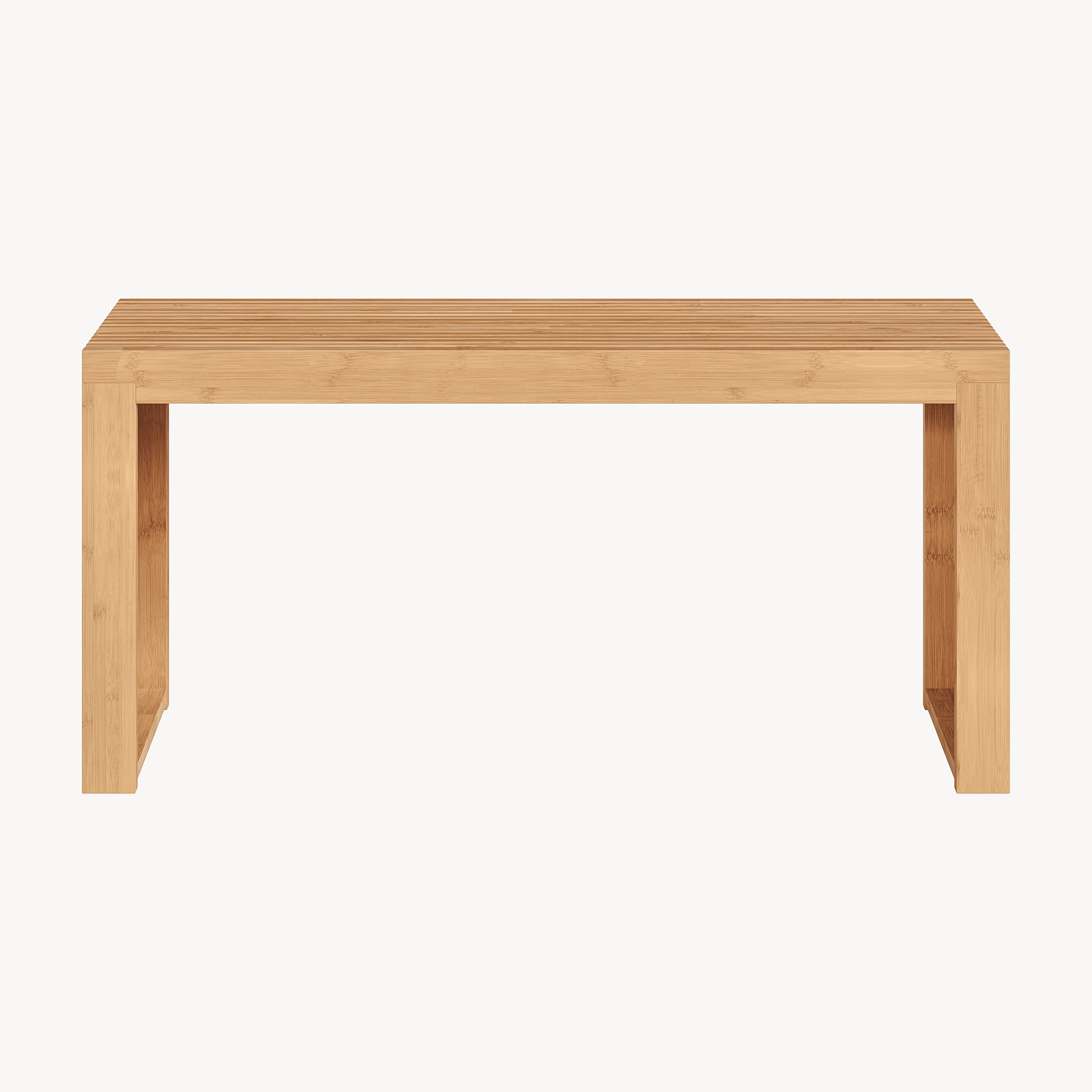 Designul cu lamele din lemn îi oferă un aspect modern și aerisit, iar în același timp contribuie la o mai bună circulație a aerului. Realizată din bambus natural, banca este rezistentă la umiditate, stabilă și potrivită pentru utilizare zilnică în mai multe încăperi din casă.