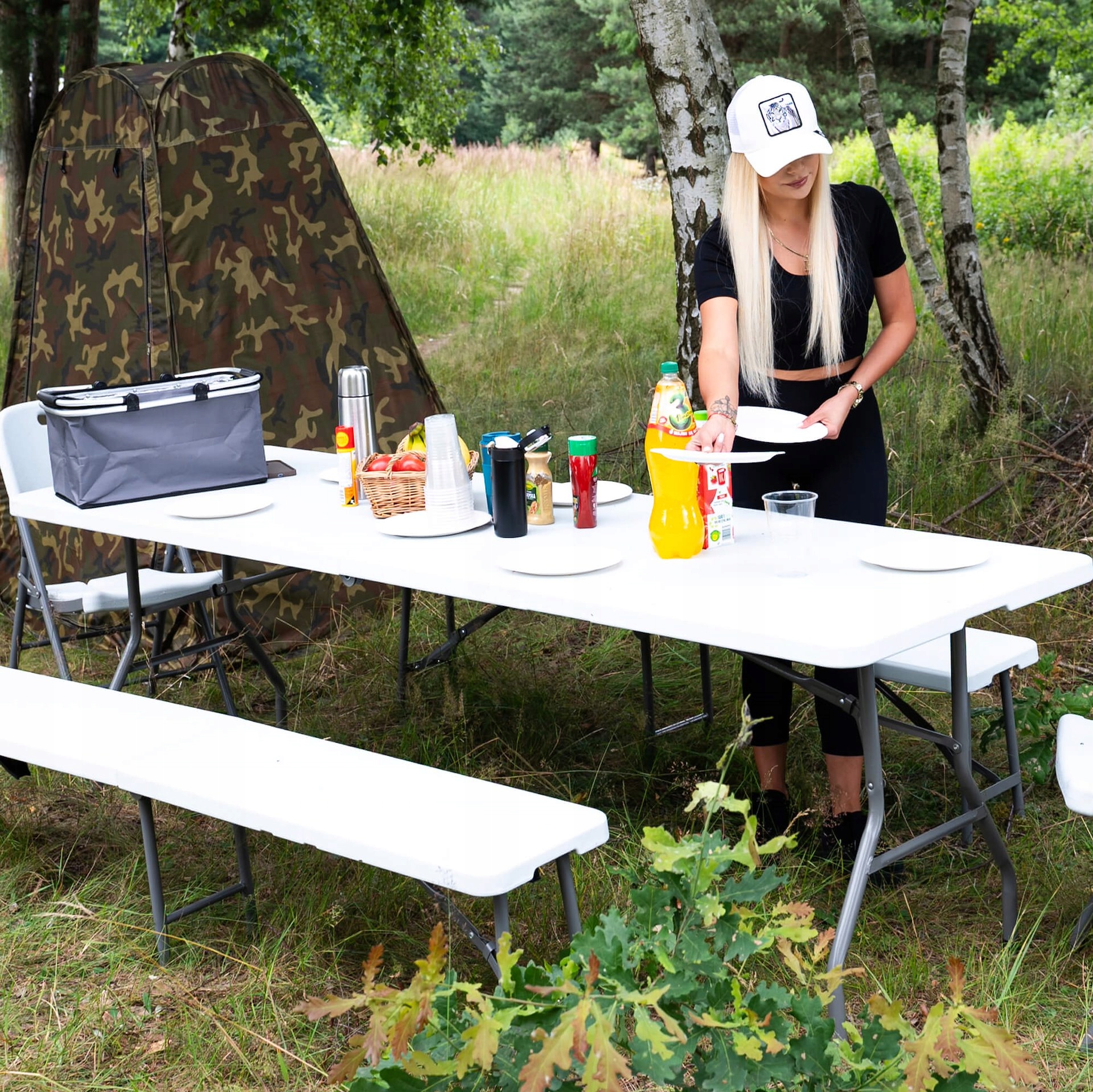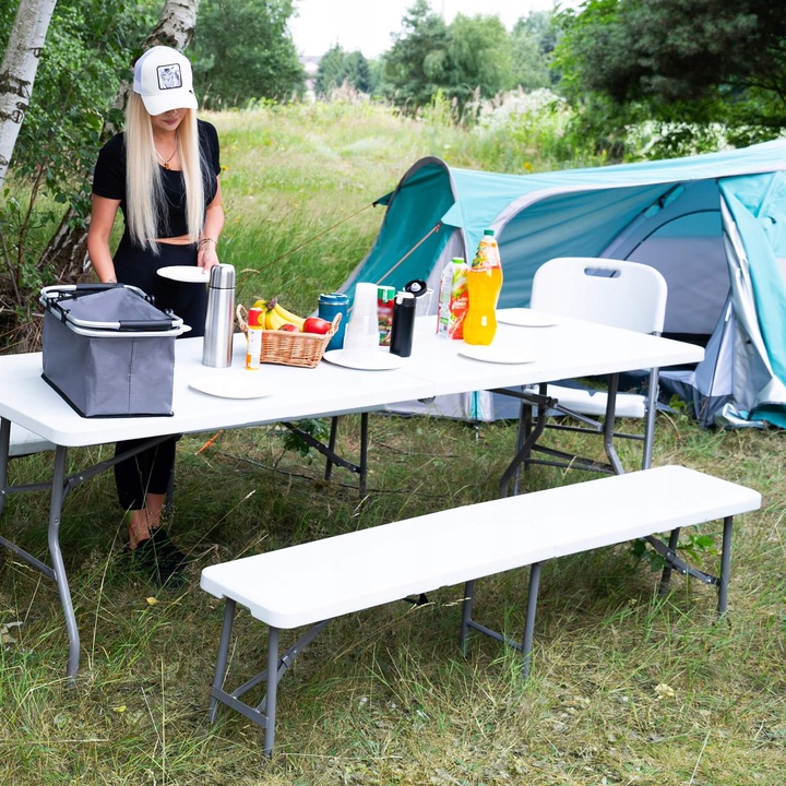 Banca pliabila, cu maner, HDPE si cadru metalic, 180x30x43 cm, alb/gri Household NewTrend