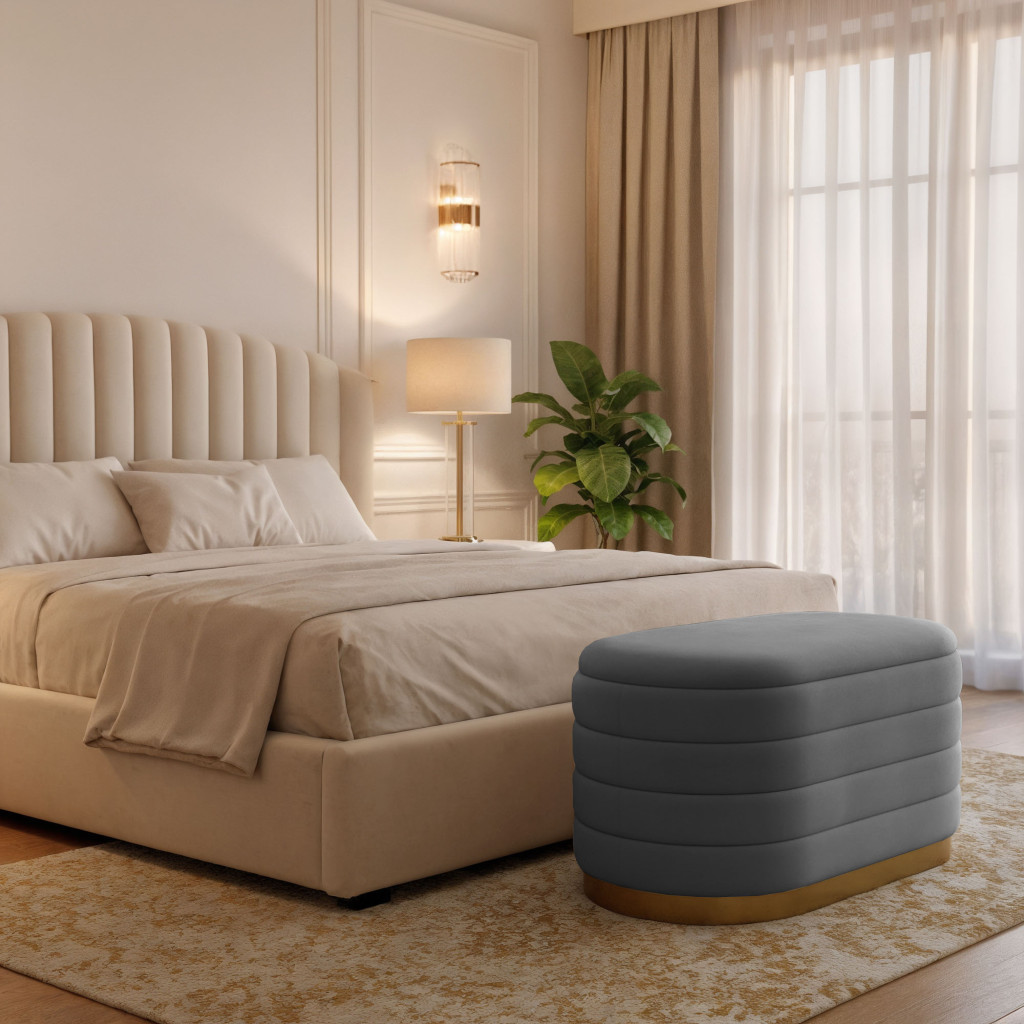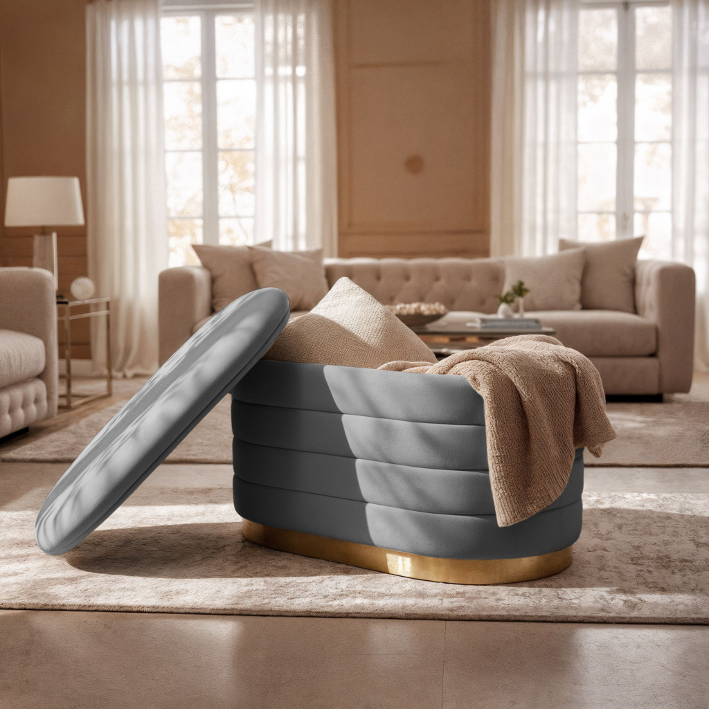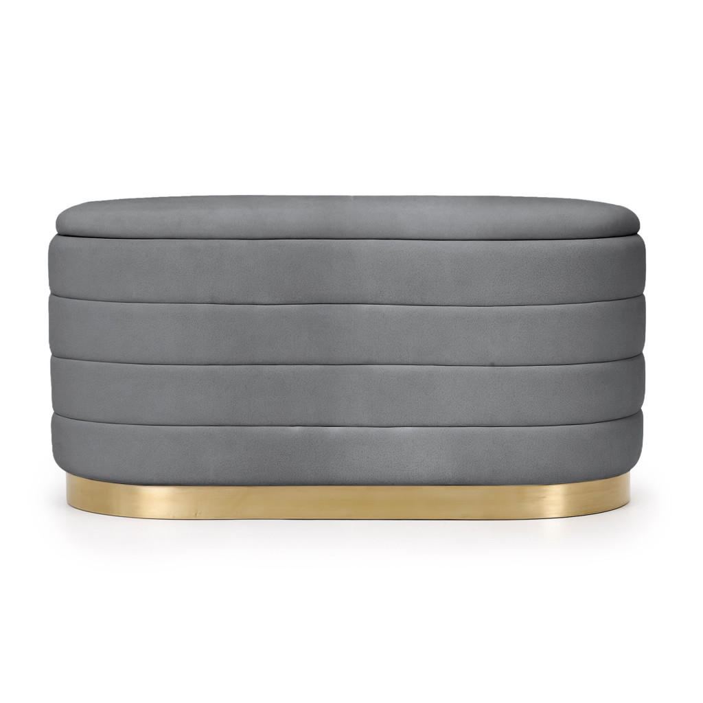 Bancheta tip puf cu depozitare, tapiterie velur, 80x42x42 cm, gri Household NewTrend