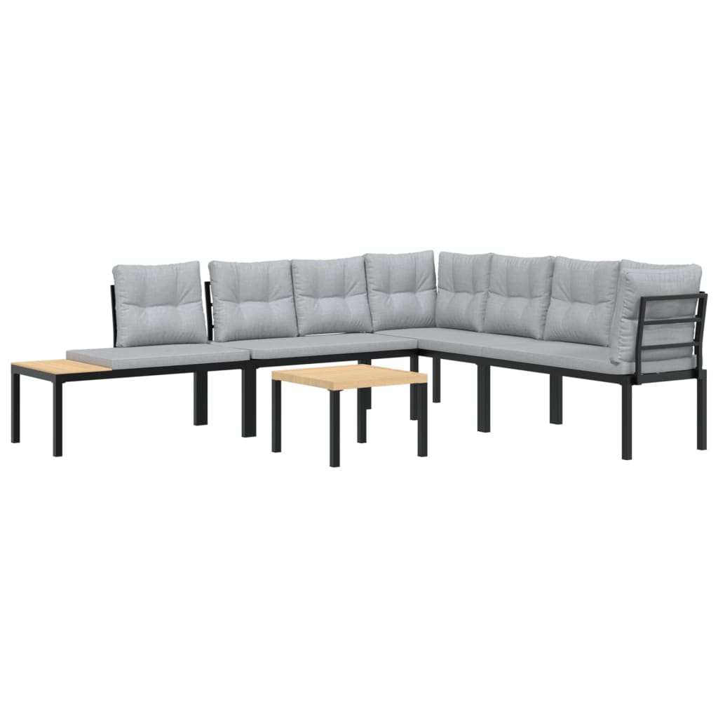 Bănci grădină cu perne, 5 buc., negru oțel vopsit electrostatic GartenMobel Dekor